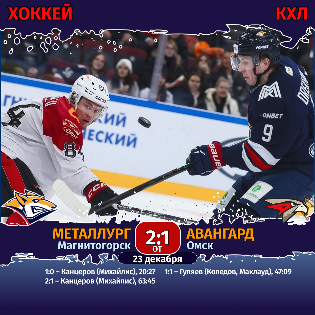 Хоккей. Чемпионат КХЛ. 23 декабря. «Металлург» (Магнитогорск) — «Авангард» (Омск) — 2:1 от (0:0, 1:0, 0:1, 1:0).