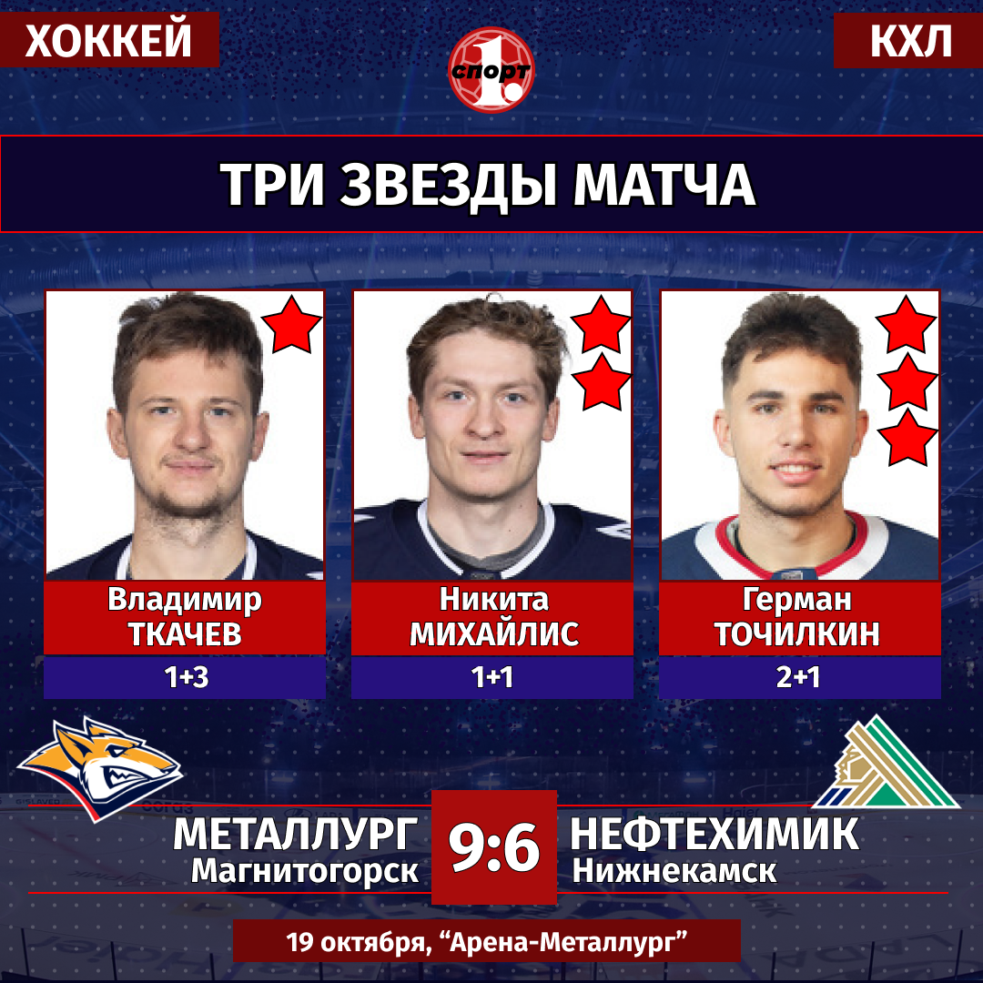 Хоккей. Сезон-2025/2026. Чемпионат КХЛ. 19 октября. «Металлург» (Магнитогорск) — «Нефтехимик» (Нижнекамск) — 9:6 (5:1,3:1, 1:4).