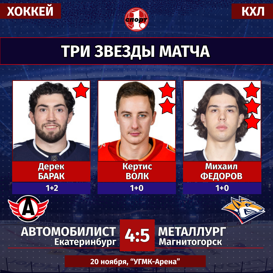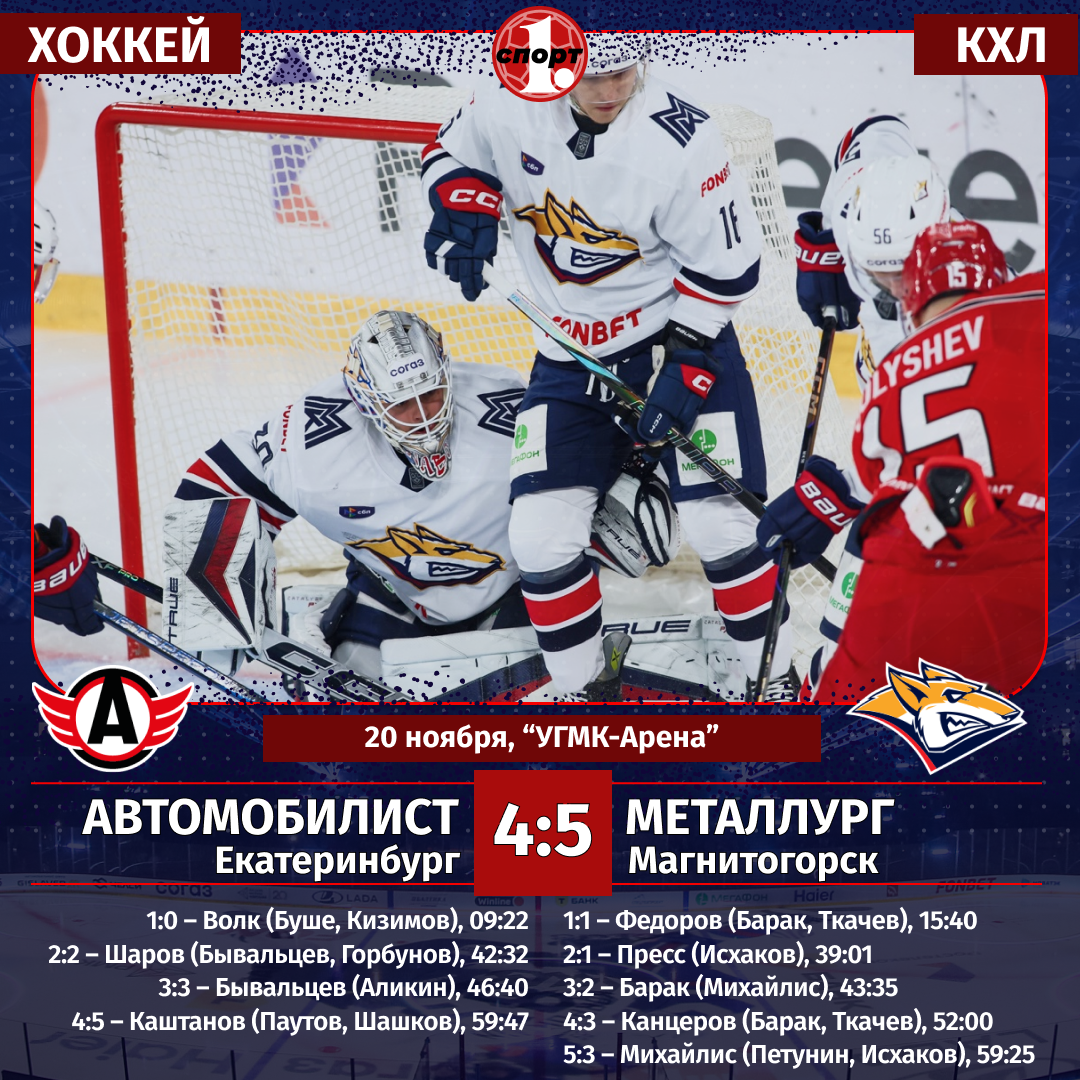 Хоккей. Сезон-2025/2026. Чемпионат КХЛ. 20 ноября. «Автомобилист» (Екатеринбург) — «Металлург» (Магнитогорск) — 4:5 (1:1, 0:1, 3:3).