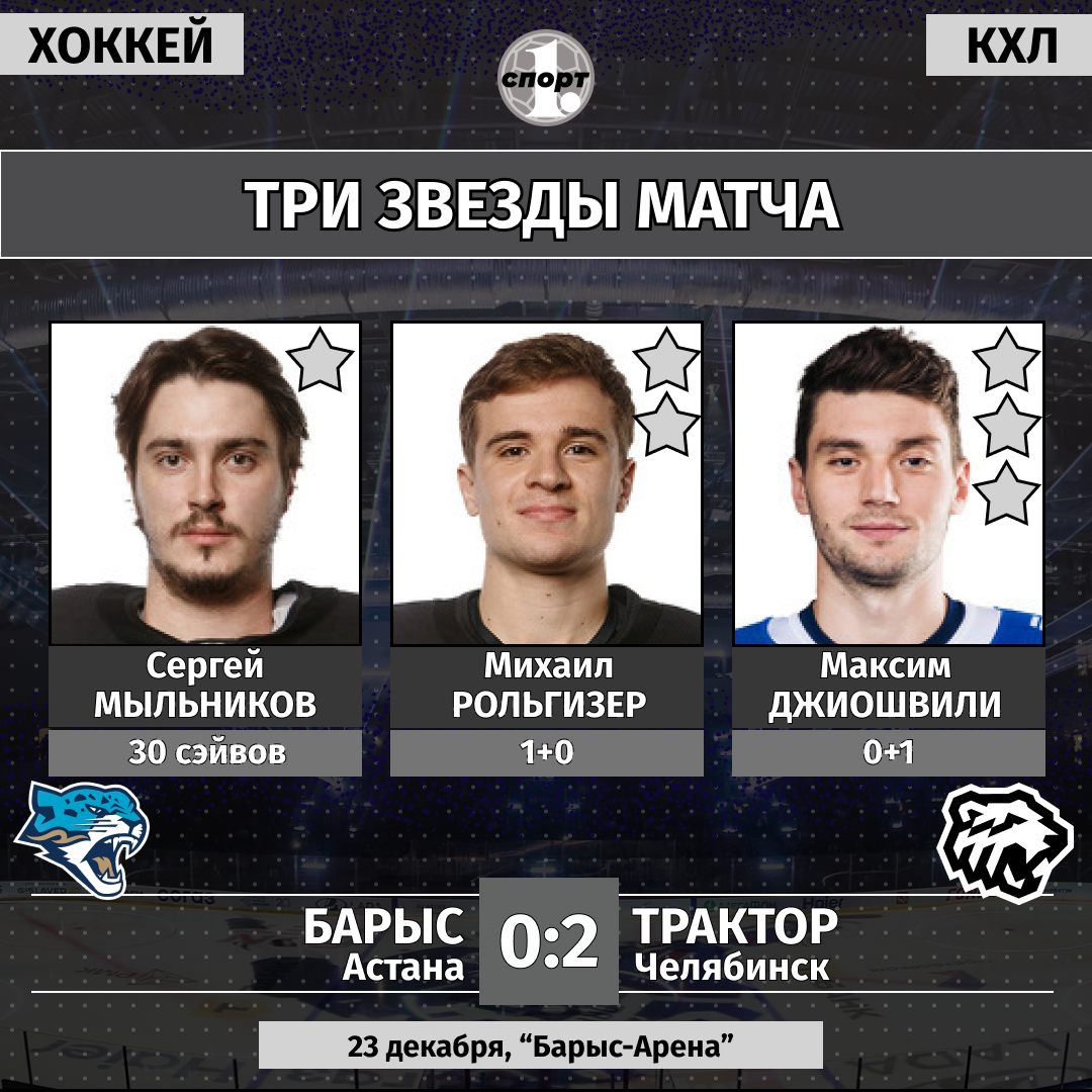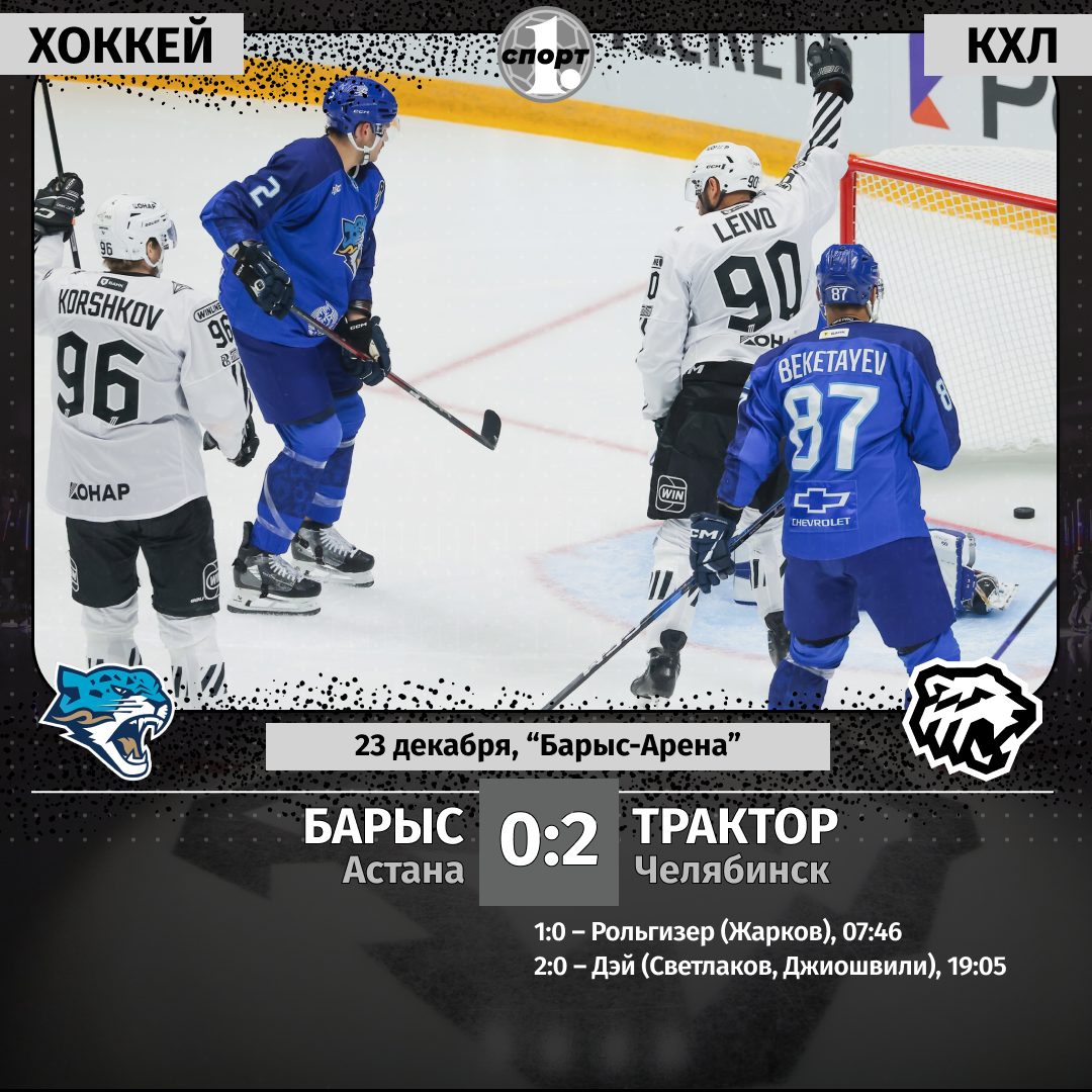 Хоккей. Сезон-2025/2026. Чемпионат КХЛ. 23 декабря. «Барыс» (Астана) — «Трактор» (Челябинск) — 0:2 (0:2, 0:0, 0:0).