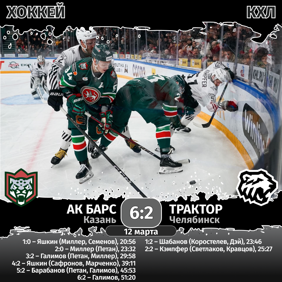 28 февраля, 2025 г. «Трактор» — «Ак Барс» — 3:2.