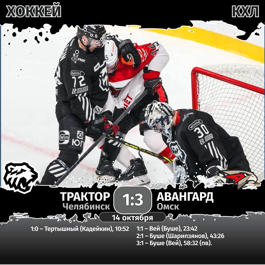 Хоккей. Чемпионат КХЛ. 14 октября. «Трактор» (Челябинск) — «Авангард» (Омск) — 1:3 (1:0, 0:1, 0:2).