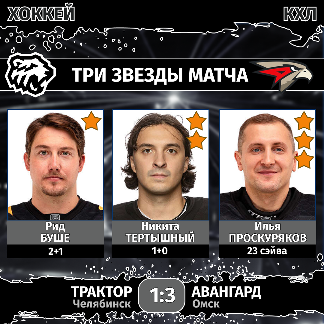 Хоккеисты челябинского «Трактора» уступили омскому «Авангарду» в чемпионате КХЛ со счетом 1:3. В составе гостей очередной матч-шедевр выдал Рид Буше. Канадский форвард принял участие во всех заброшенных шайбах своей команды, набрав 3 (2 + 1) очка. Южноуральский клуб прервал серию из шести победных матчей кряду, сообщает корреспондент ИА «Первое областное».