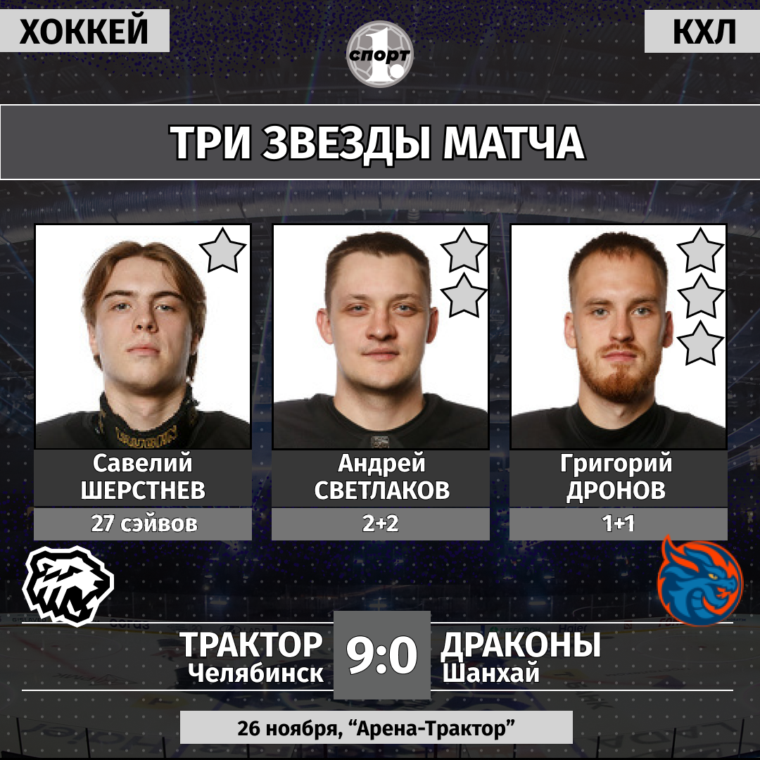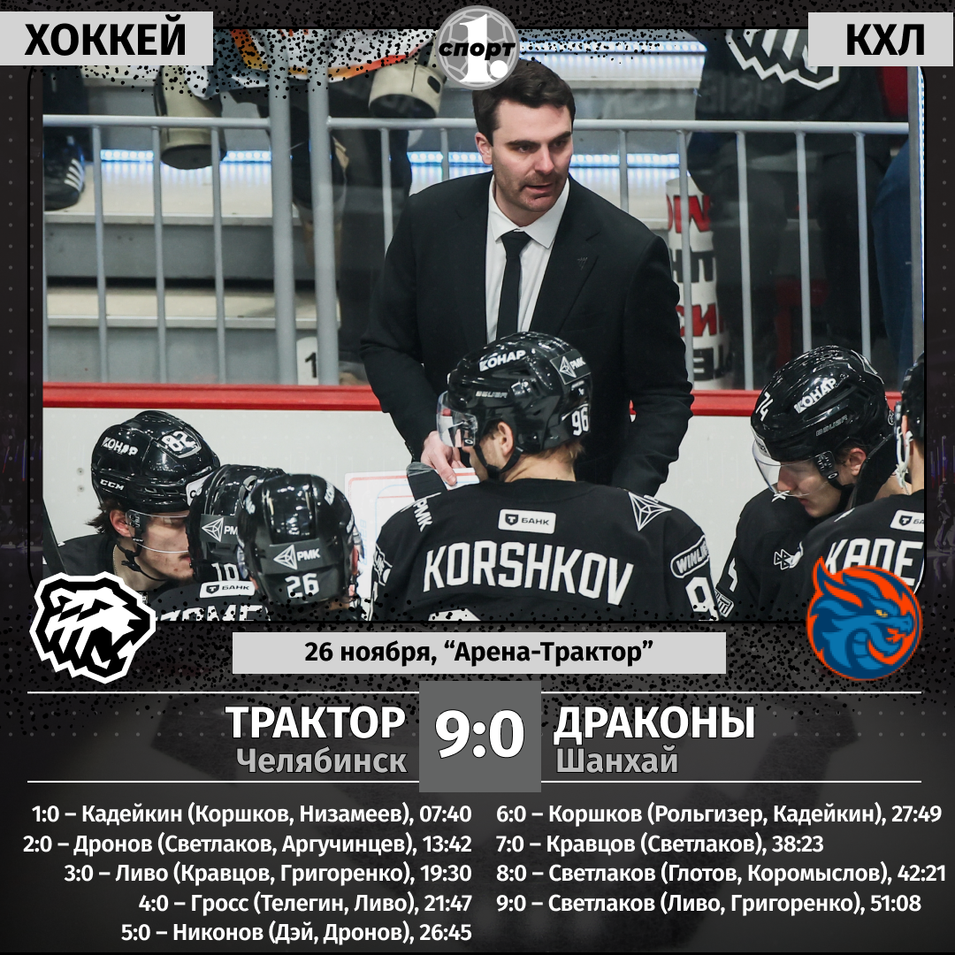 Хоккей. Сезон-2025/2026. Чемпионат КХЛ. 26 ноября. «Трактор» (Челябинск) — «Драконы» (Шанхай) — 9:0 (3:0, 4:0, 2:0).