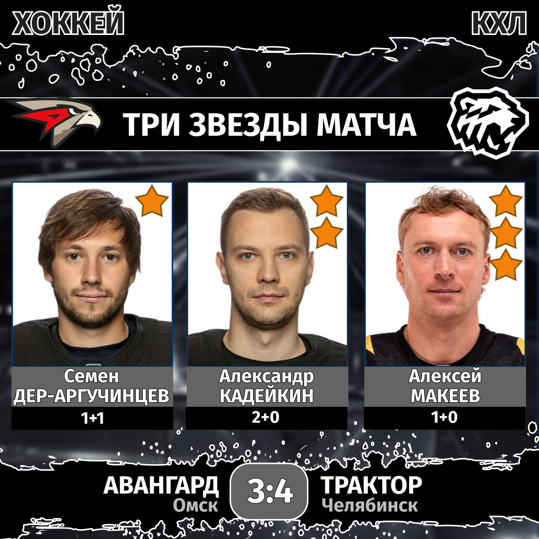 Хоккеисты челябинского «Трактора» снова порадовали своей игрой, выиграв в гостях у омского «Авангарда» со счетом 4:3. Это уже 10-я победа челябинского клуба в 11 последних матчах чемпионата КХЛ! В составе «черно-белых» сегодня, 23 октября, лучшими были Семен Дер-Аргучинцев (1+1) и Александр Кадейкин (2+0). Подопечные Бенуа Гру еще больше упрочили лидерство в Восточной конференции, сообщает корреспондент ИА «Первое областное».