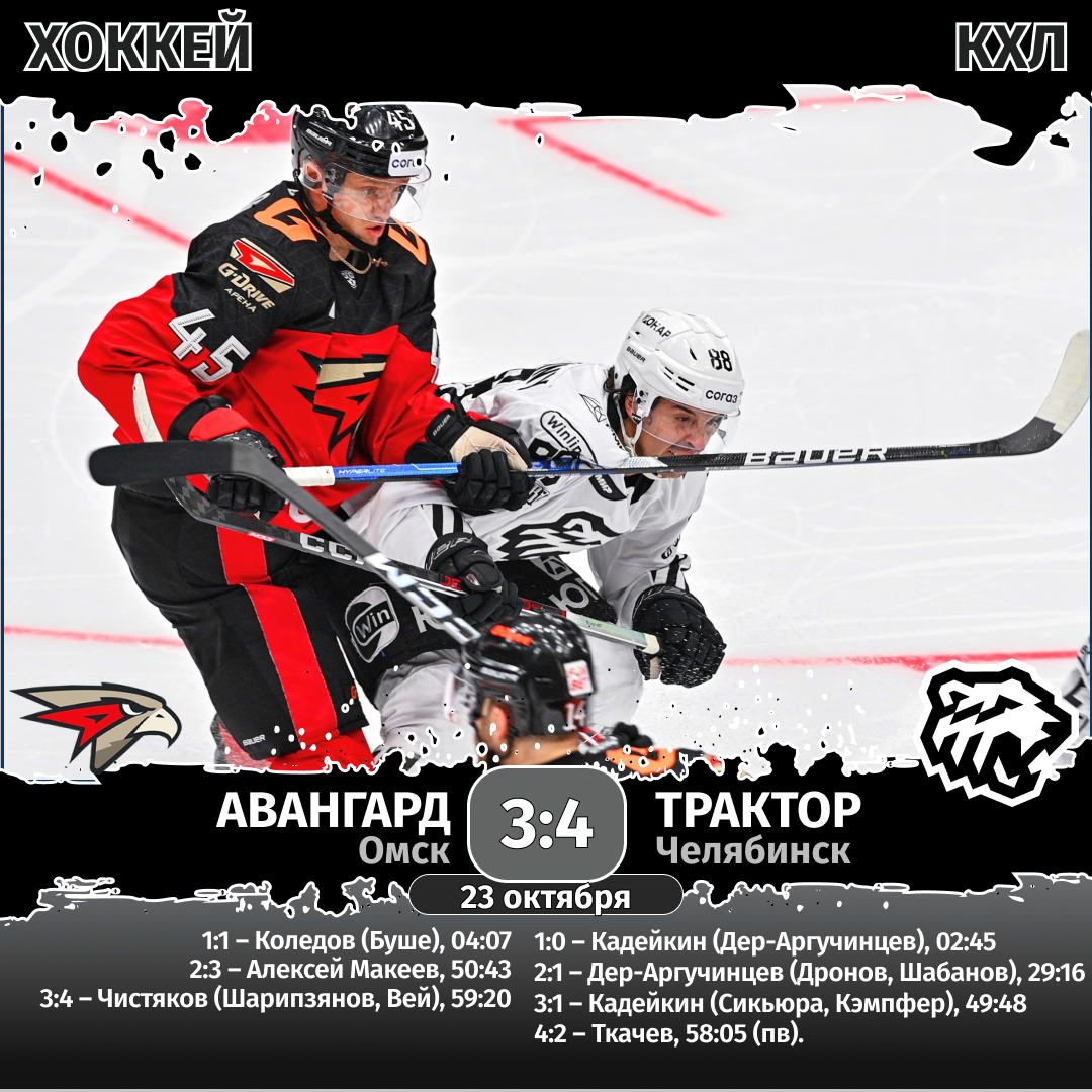 Хоккей. Чемпионат России. КХЛ. 23 октября. «Авангард» (Омск) — «Трактор» (Челябинск) — 3:4 (1:1, 0:1, 2:2).