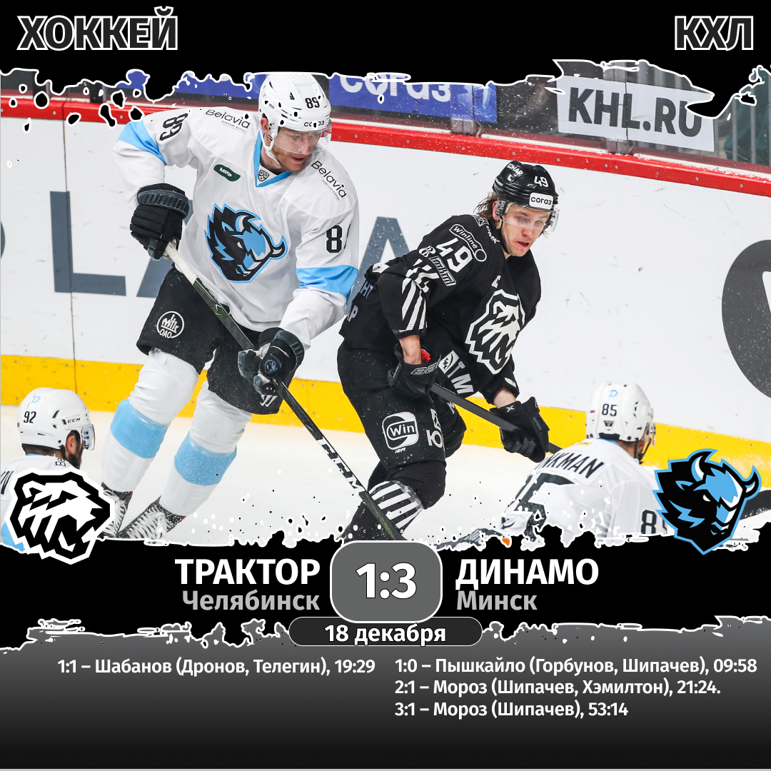 Хоккей. Чемпионат КХЛ. 18 декабря. «Трактор» (Челябинск) — «Динамо» (Минск) — 1:3 (1:1, 0:1, 0:1).