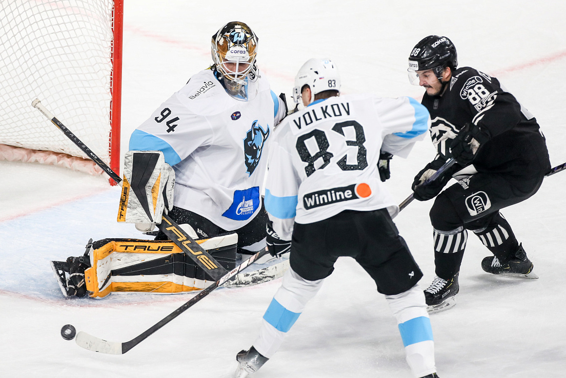 К исходу 10 минут игры хозяева площадки нанесли лишь один бросок в створ ворот соперника. Да и в целом «черно-белые» атаковали не так часто, как этого хотелось бы. И шайба, которую забросили минчане, вытекала из хода матча. В игровом эпизоде блеснул индивидуальным мастерством Никита Пышкайло: на синей линии он удивительно легко обыграл инертного Никиту Тертышного, вкатился в чужую зону и с острого угла отправил шайбу в «домик» Заку Фукале — 0:1.