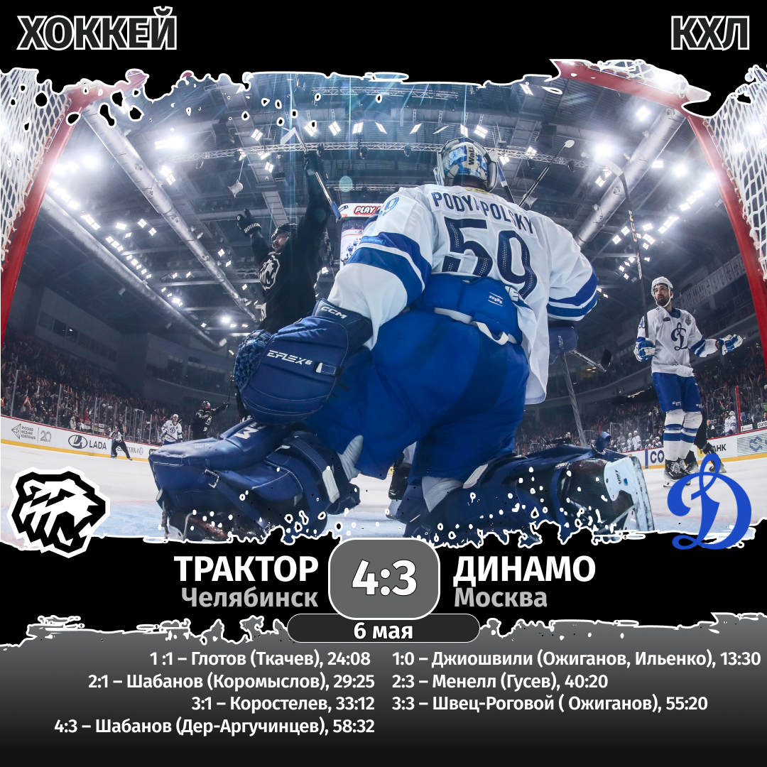 «Трактор» (Челябинск) — «Динамо» (Москва) — 4:3 (0:1, 3:0, 1:2).