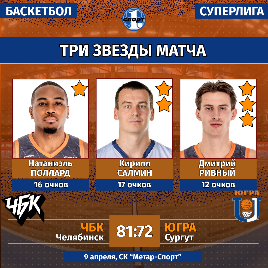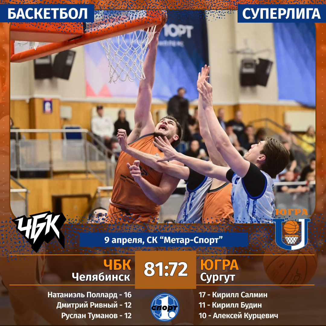 Баскетбол. Сезон-2025/2026. Суперлига. Мужчины. Плей-офф. Четвертьфинал. Второй матч. 9 апреля. «ЧБК» (Челябинск) — «Югра» (Сургут) — 81:72 (20:21, 24:20, 23:19, 14:12).