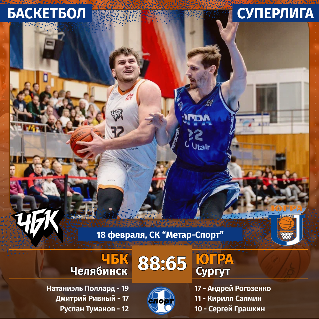Баскетбол. Сезон-2025/2026. Суперлига. 18 февраля. «ЧБК» (Челябинск) — «Югра» (Сургут«) — 88:65 (18:17, 20:15, 21:18, 29:15).