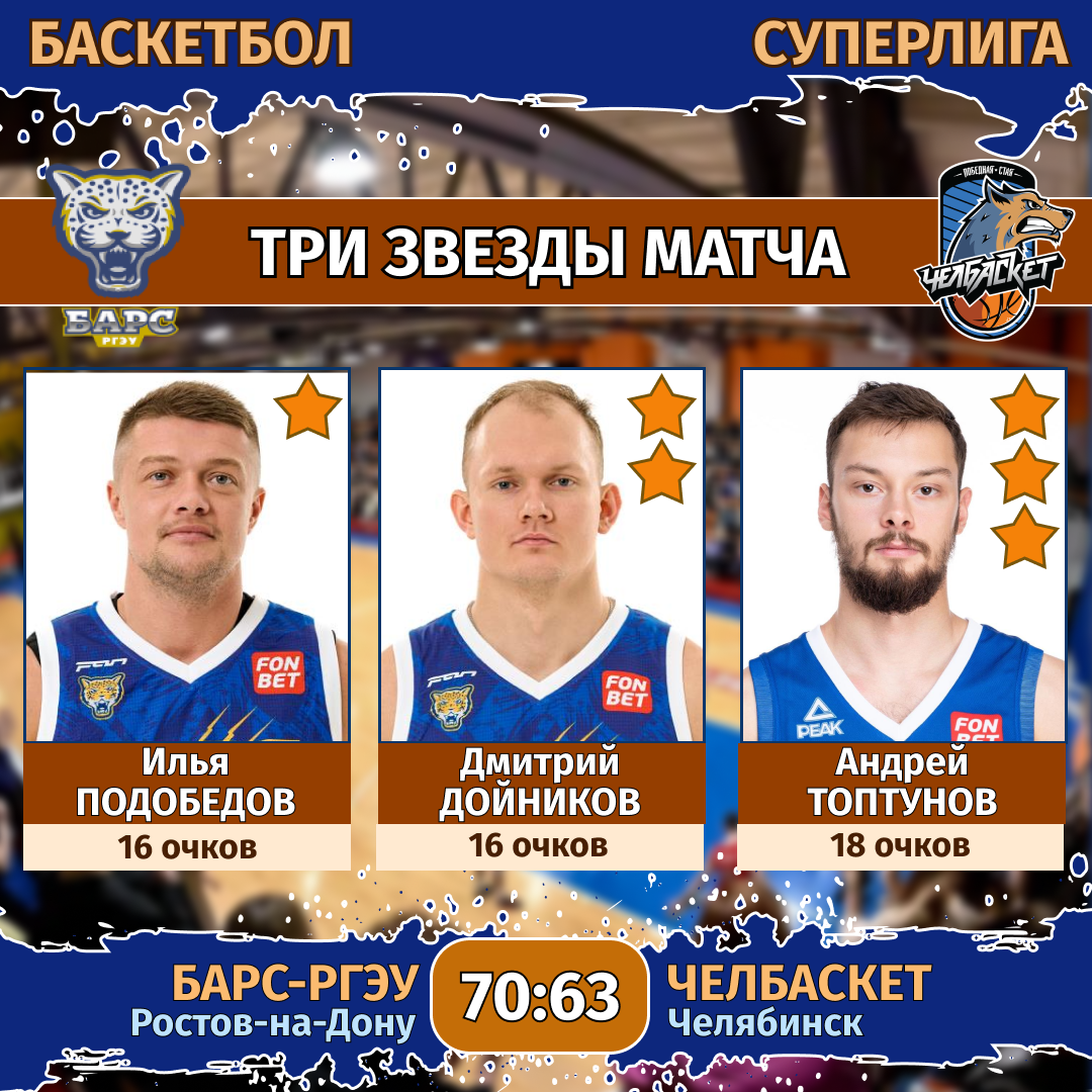 28 ноября. «БАРС-РГЭУ» (Ростов-на-Дону) — «Челбаскет» — 70:63 (17:15, 13:13, 20:18, 20:17).