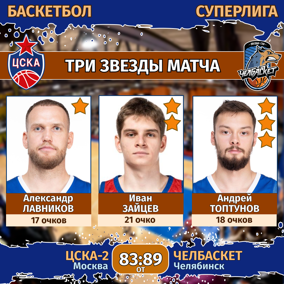 28 января. ЦСКА-2 (Москва) — «Челбаскет» (Челябинск) — 83:89 от (17:17, 16:12, 21:29, 19:15, 10:16).