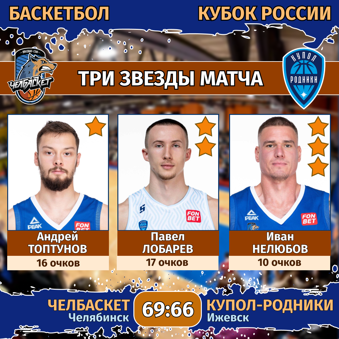 «Челбаскет»: Топтунов (16), Стубеда (11), Нелюбов (10), Лавников (7), Незванкин (6), Якунин (5), Туманов (5), Третьяк (4), Грашкин (3), Борисов (2).