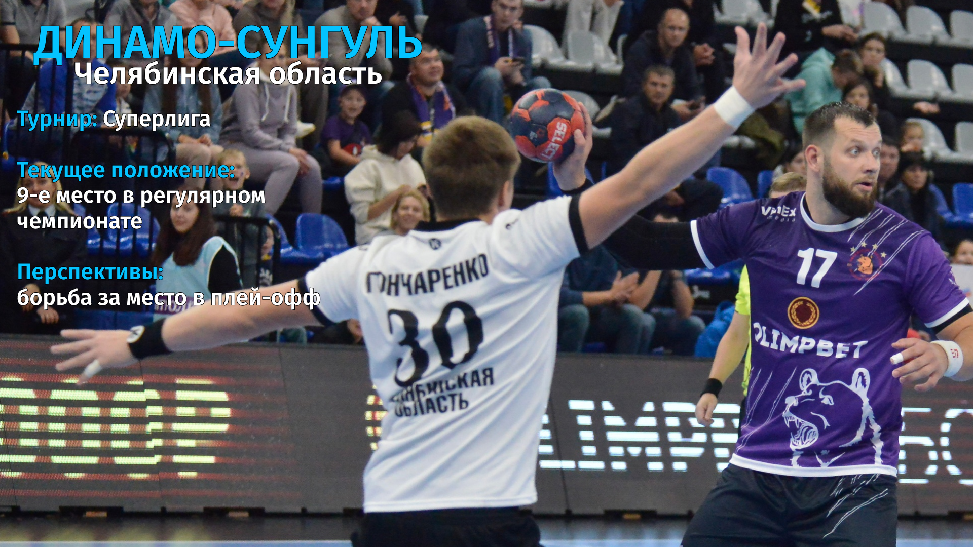 В регулярном чемпионате «Динамо-Сунгуль» сейчас идет на 9-м месте. Для выхода в плей-офф нужно попадать в восьмерку сильнейших, а это «–3» очка от астраханского «Динамо». Теоретически южноуральцы еще могут пробиться в плей-офф, но сделать это будет непросто. Им осталось провести три непростых матча: «СГАУ-Саратов» (дома), «Пермскими медведями» (в гостях) и «Зенитом» (дома).