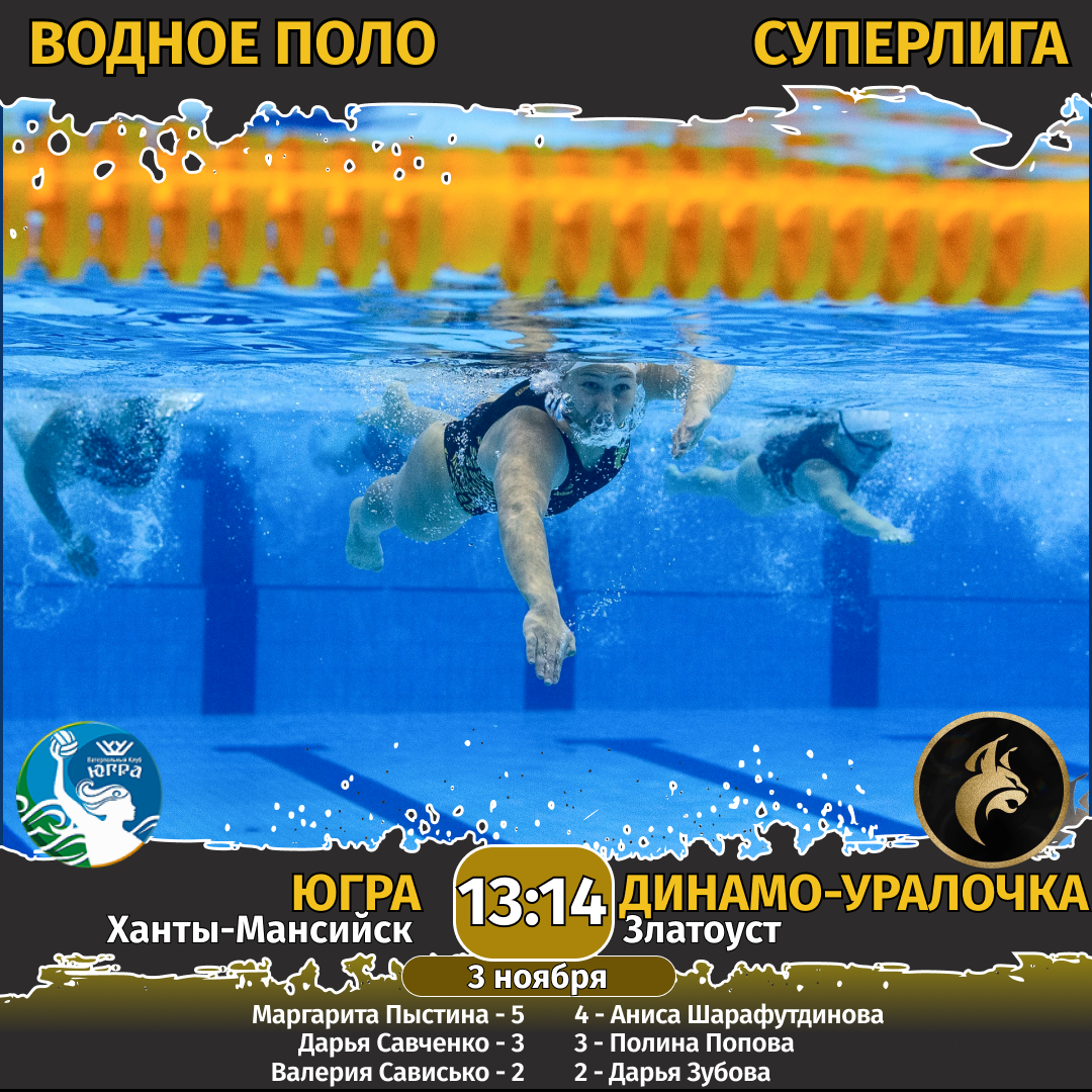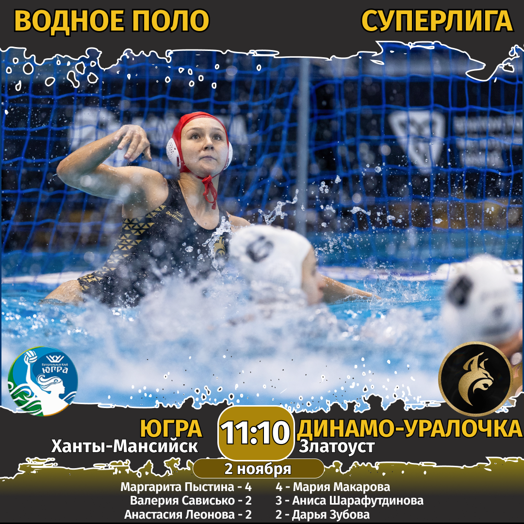 Сегодня, 3 ноября, ватерполистки «Динамо-Уралочки» смогли взять реванш. Как и днем ранее, игра получилась равной. Наша команда хорошо провела второй период, выиграв его со счетом 5:3, а в третьем отрезке матча еще больше упрочила преимущество. Увы, на заключительный период силенок нашим девчатам не хватило. «Югра» провела его мощно, сократив разрыв в счете до минимума. Тем не менее спортсменки «Динамо-Уралочки» сохранили победный счет и нанесли сопернику первое поражение в текущем чемпионате страны.