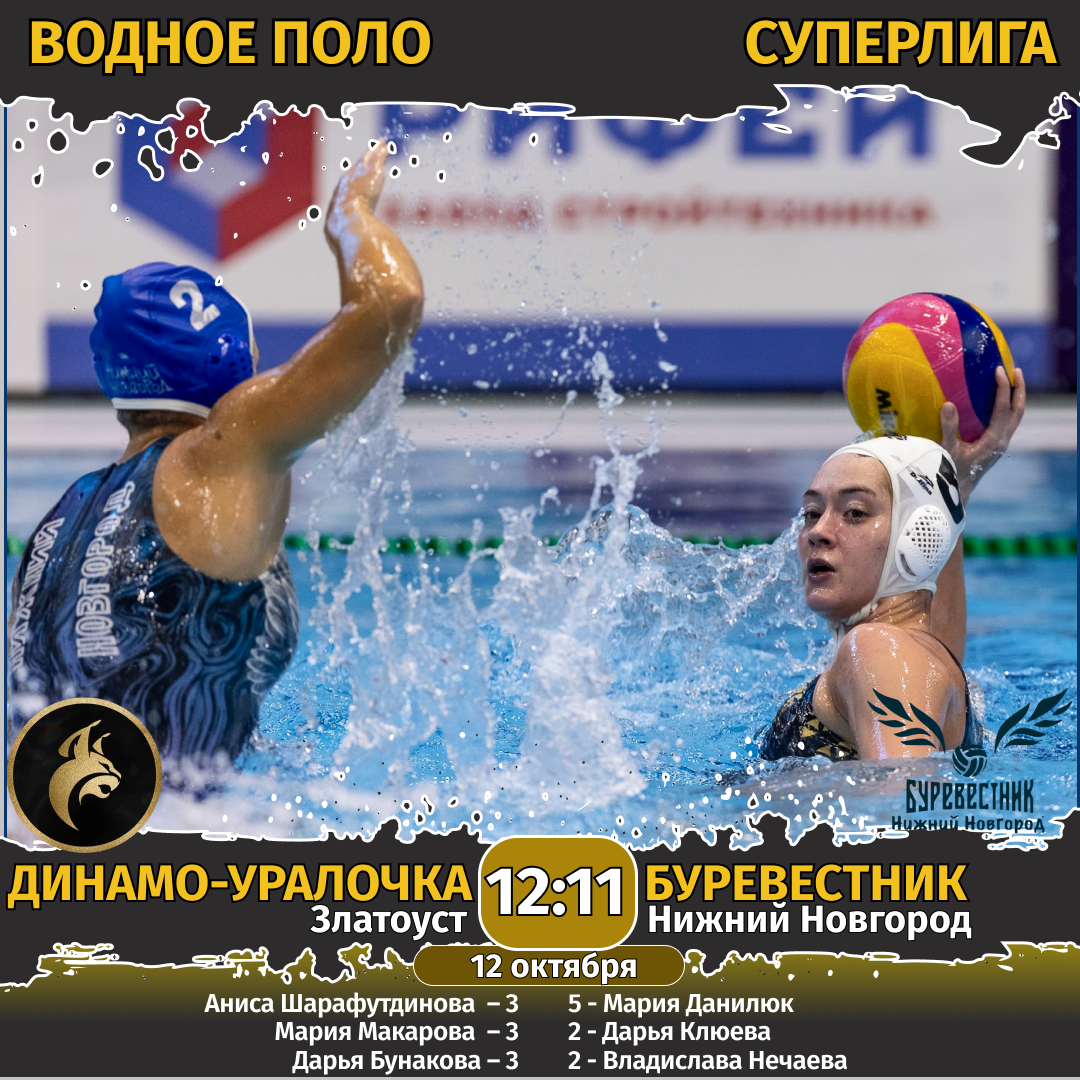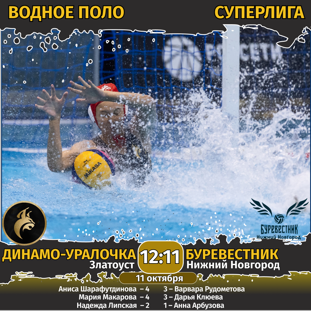 Женская ватерпольная команда «Динамо-Уралочка» одержала две непростые победы в чемпионате России над нижегородским «Буревестником» с одинаковым счетом 12:11. На старте турнира действующие чемпионки страны выиграли уже четыре матча из четырех. Клуб из Златоуста делит 1—2-е места с командой «Кириши» из Ленинградской области, сообщает корреспондент ИА «Первое областное».