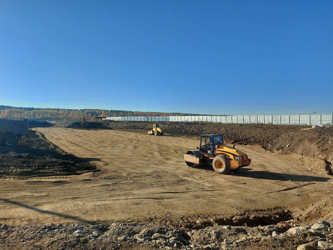 На сегодняшний день строительно-монтажные работы на объекте идут в соответствии с графиком. Проводится срезка почвенного слоя и отсыпка скальным грунтом, начались свайные работы.
