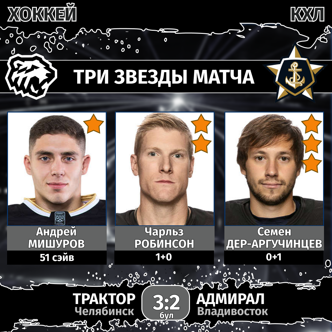 Сделал 51 (!) сейв, став главным героем матча. Набранное «моряками» очко — целиком и полностью его заслуга. Хорошо провел и буллитную серию.