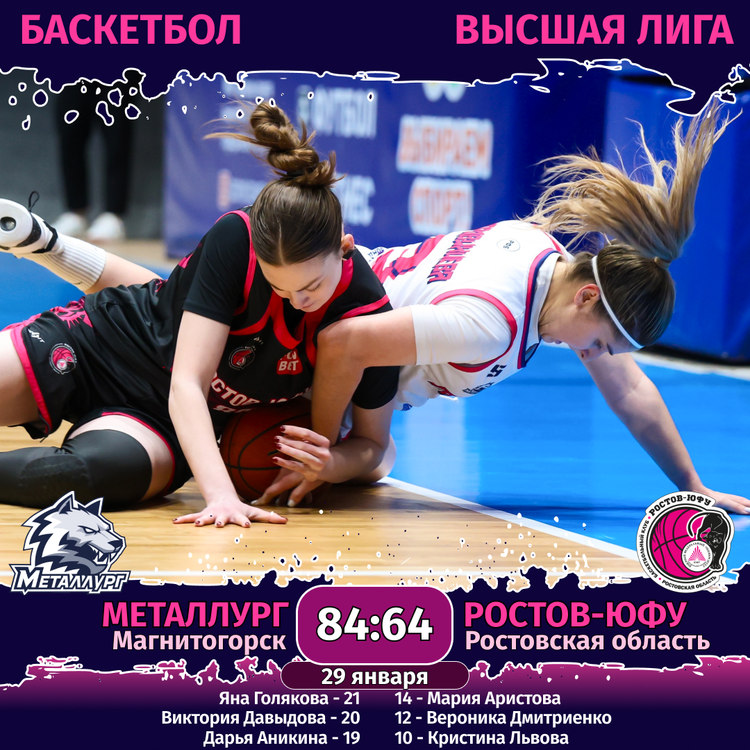 29 января. «Металлург» (Магнитогорск) — «Ростов-ЮФУ» (Ростовская область) — 84:64 (28:18, 17:19, 26:13, 15:14).