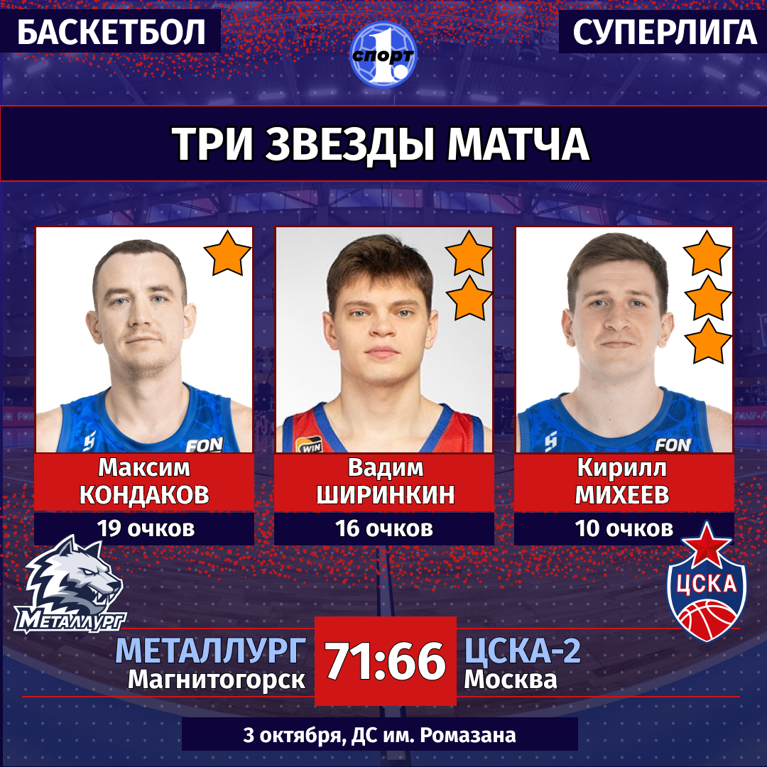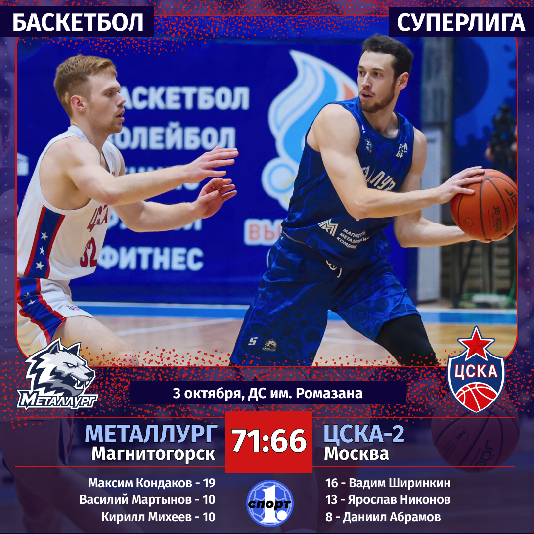 3 октября. «Металлург» (Магнитогорск) — ЦСКА-2 (Москва) — 71:66 (23:12, 18:16, 13:14, 17:24).