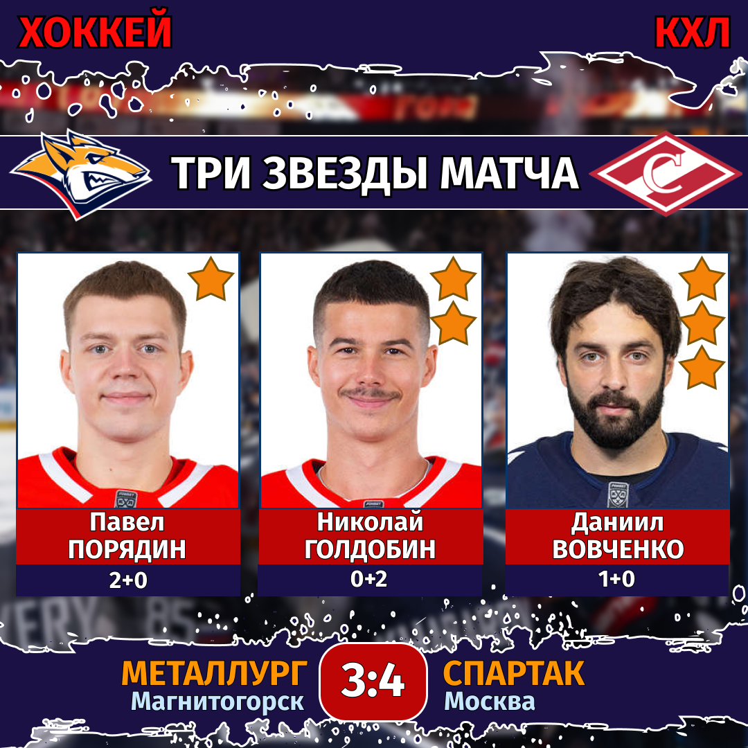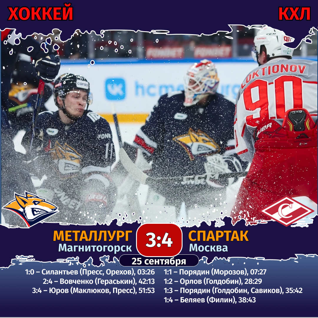 Хоккей. Чемпионат КХЛ. 25 сентября. «Металлург» (Магнитогорск) — «Спартак» (Москва) — 3:4 (1:1, 0:3, 2:0).