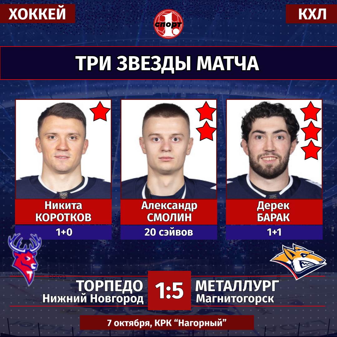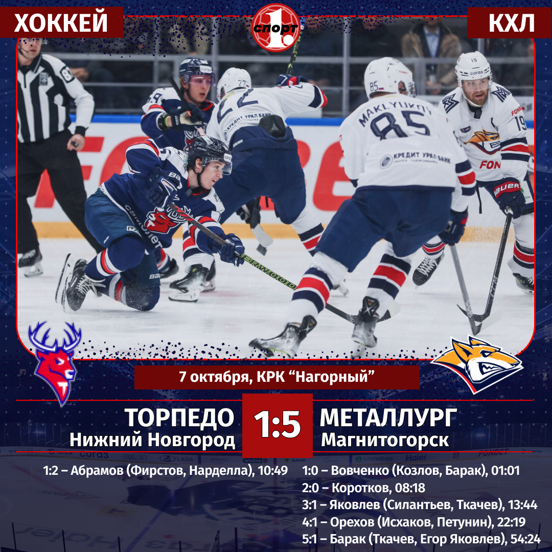 Хоккей. Сезон-2025/2026. Чемпионат КХЛ. 7 октября «Торпедо» (Нижний Новгород) — «Металлург» (Магнитогорск) — 1:5 (1:3, 0:1, 0:1).