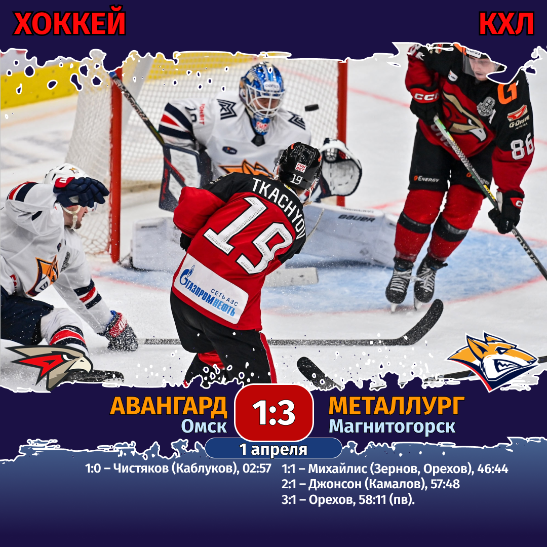1 апреля. «Авангард» (Омск) — «Металлург» (Магнитогорск) — 3:1 (1:0, 0:0, 2:1).