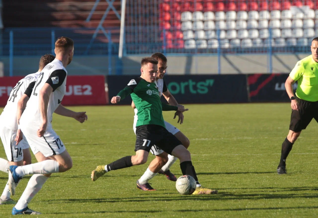 В первые 15 минут матча шла борьба за территорию. Причем «черно-белые» чаще гостили на половине поля соперника. Но до реальных голевых моментов дело не доходило. А на 18-й минуте хозяева открыли счет в матче. Владимир Марков выкатил мяч под удар Даниилу Котельникову. Тот здорово обработал снаряд и вторым касанием мощно пробил с линии штрафной. Голкипер «черно-белых» Алексей Поляков задел мяч, однако тот все же залетел в ворота — 1:0.
