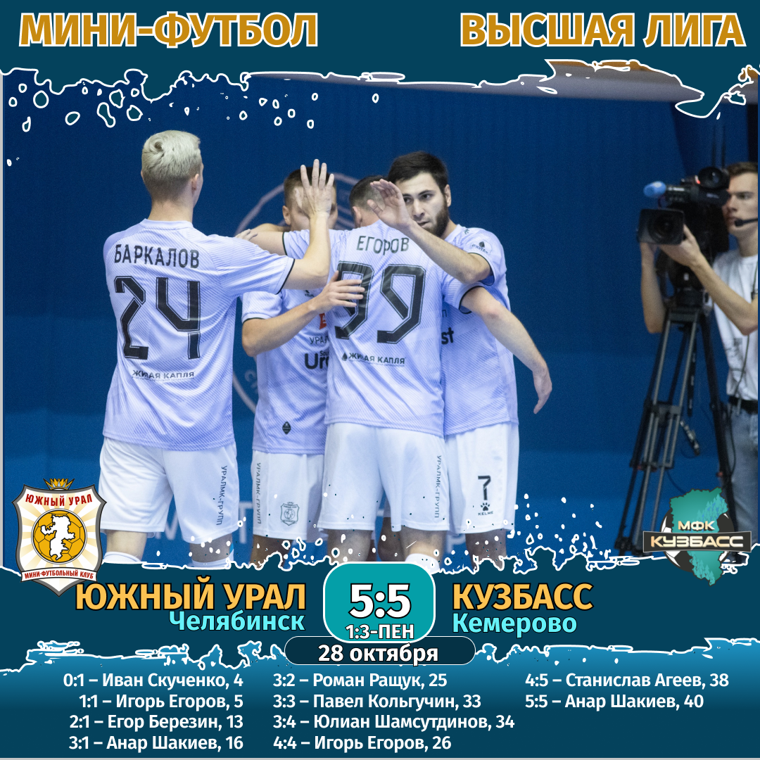Челябинский мини-футбольный клуб «Южный Урал» провел первые домашние матчи сезона в Высшей лиге. На своей площадке наша команда уверенно победила «Сибиряка» (8:3), но уступила по пенальти кемеровскому «Кузбассу» (5:6). Это первое поражение челябинского клуба в текущем турнире, оно не помешало ему сохранить лидерство в турнирной таблице, сообщает корреспондент ИА «Первое областное».