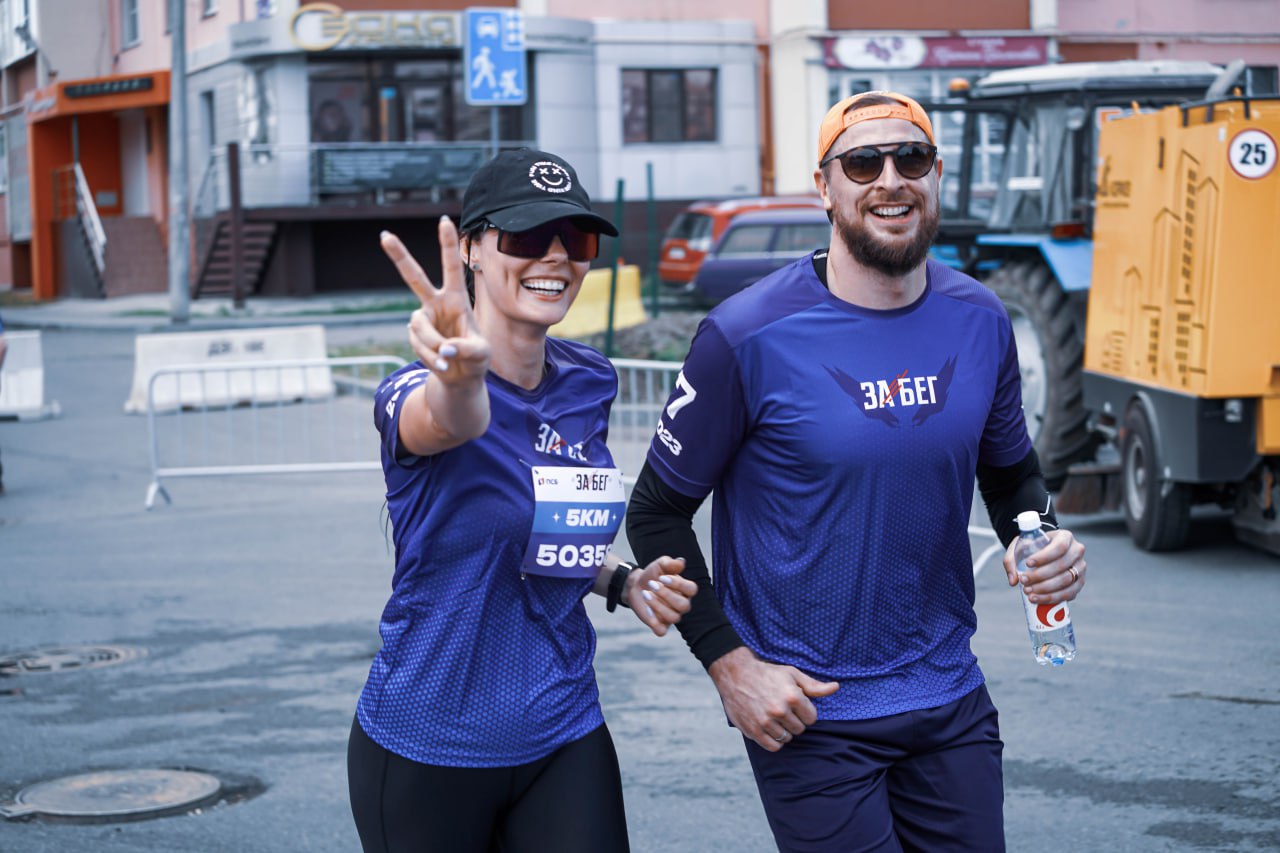 На фото: «Забег.РФ» в Челябинске. Владимир Иванов преодолел дистанцию с супругой Натальей