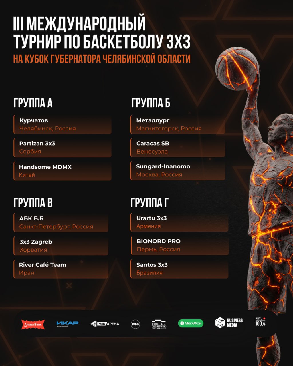 III международный Кубок губернатора Челябинской области по баскетболу 3×3. Состав групп:
