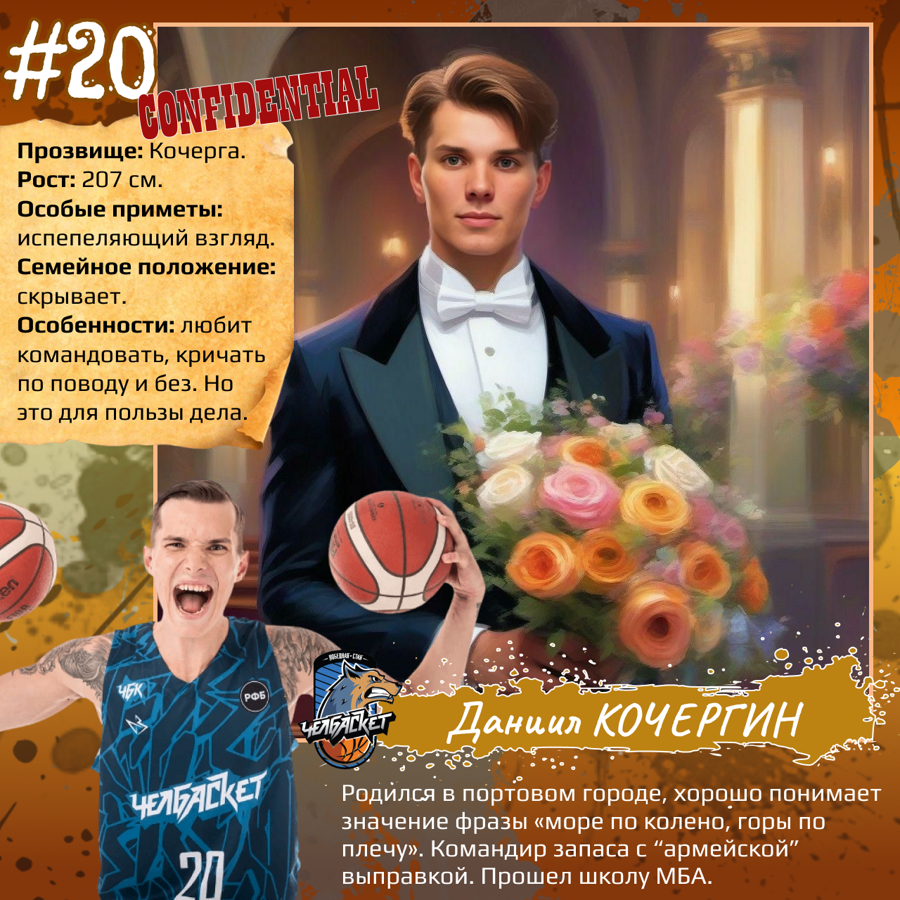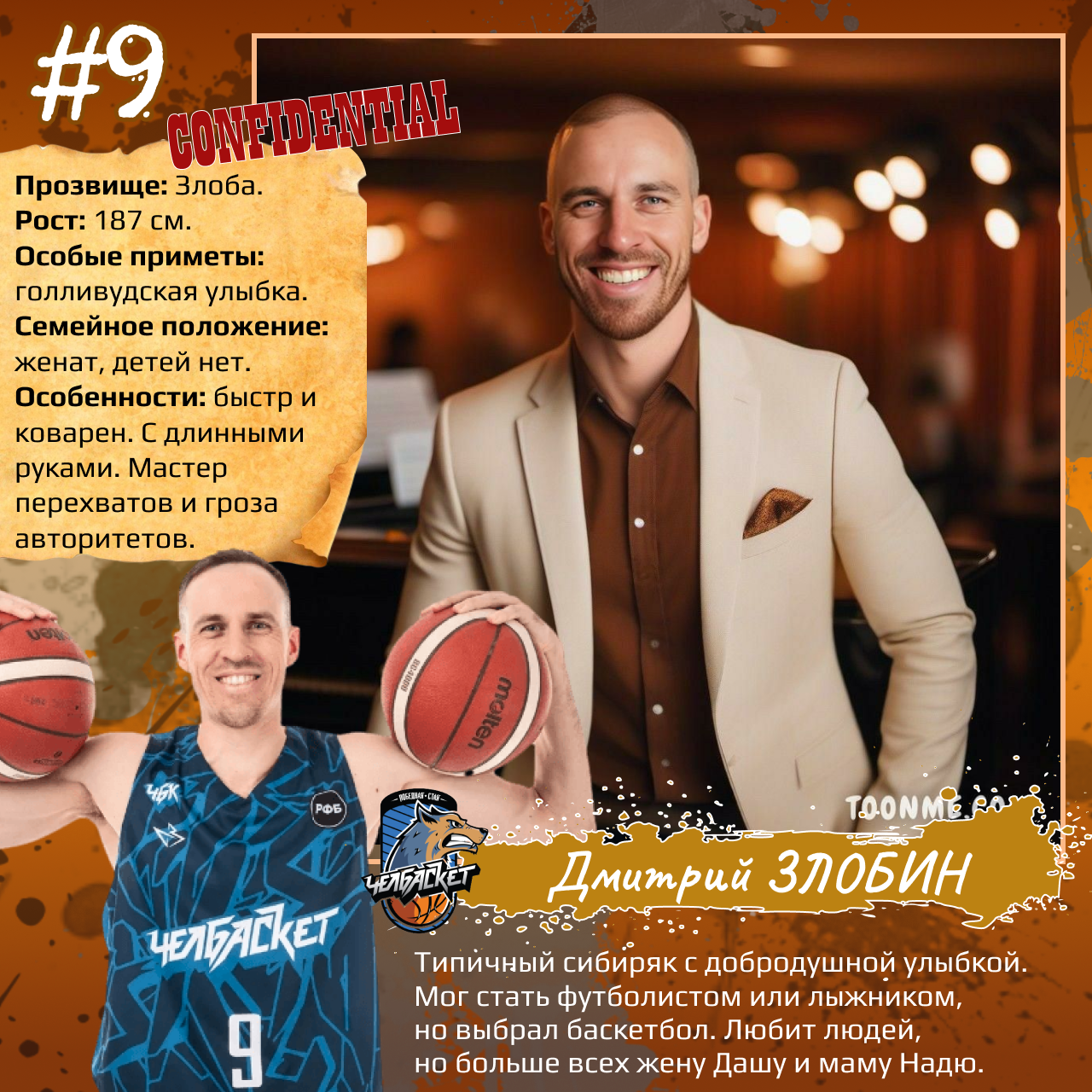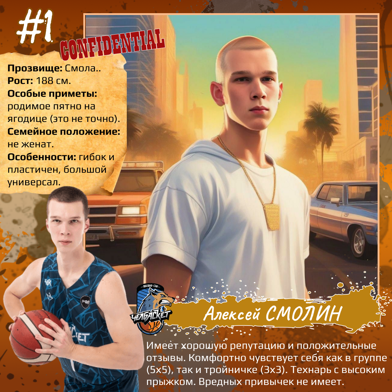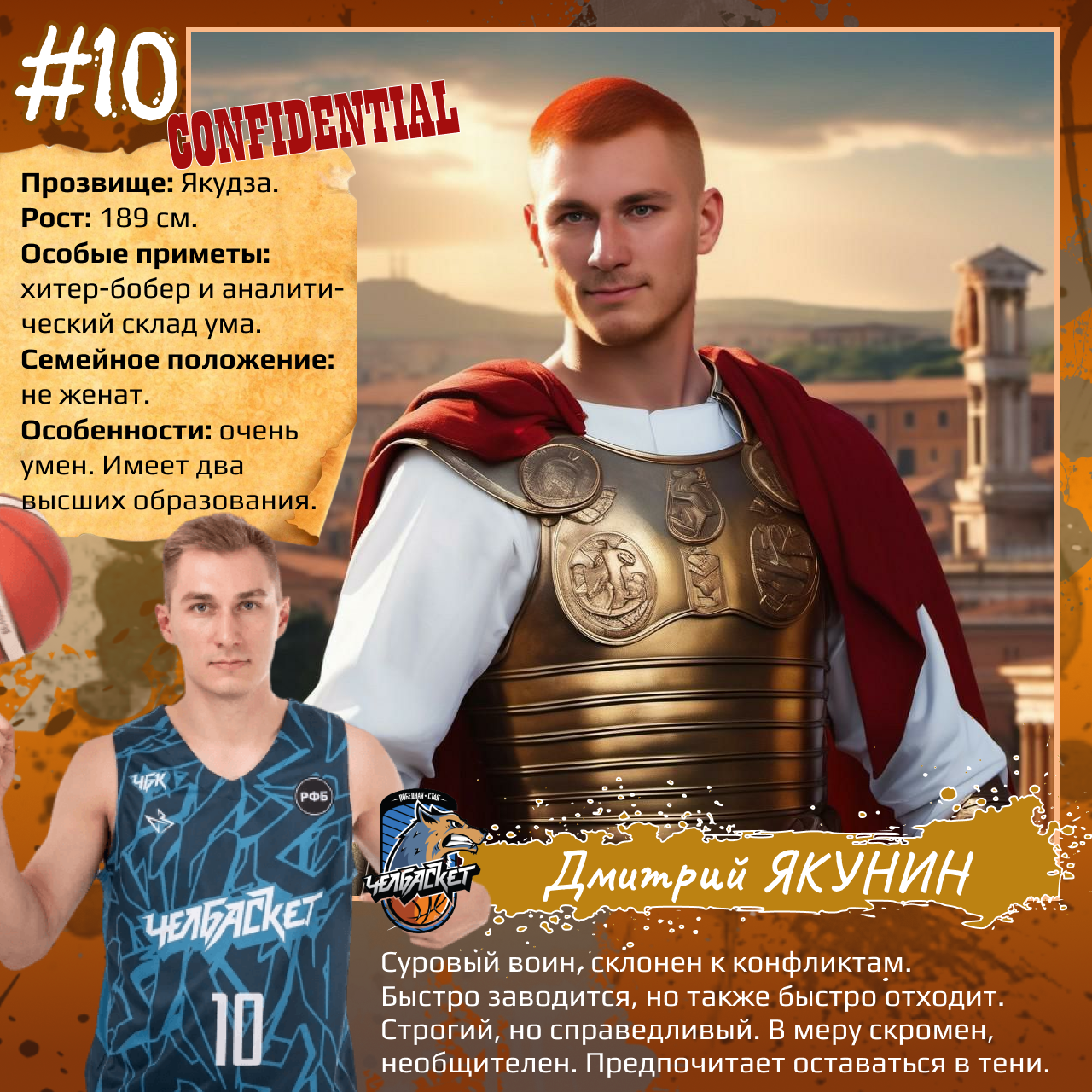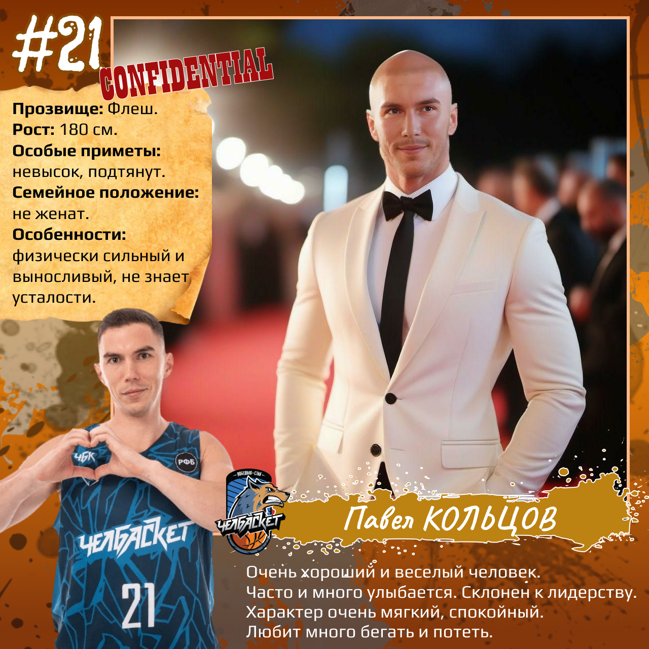 P. S. Карточки к игрокам мы сделали с помощью популярного приложения. Необычные образы дополнили описаниями в стиле старого советского мультфильма «Остров сокровищ». При этом пообщались с ребятами и попросили их рассказать о партнерах по команде. Получилось забавно, но в некоторых случаях на грани фола. Далеко не факт, что наше представление об игроках «Челбаскета» близко к реальности. Но, как говорится, любые случайности — совпадение, а в каждой шутке есть доля правды. Уверены, что сами ребята на нас не в обиде.