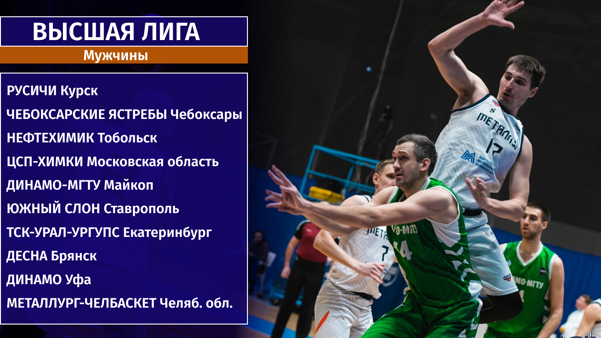 Мужской чемпионат России по баскетболу также пройдет в трех лигах. В общей сложности в нем выступят 37 клубов. В высшем эшелоне сыграют 11 команд. Многочисленным получится турнир в Суперлиге — в борьбу за трофей вступят 16 команд. Здесь представлены и два южноуральских коллектива — «Челбаскет» (Челябинск) и «Металлург» (Магнитогорск).