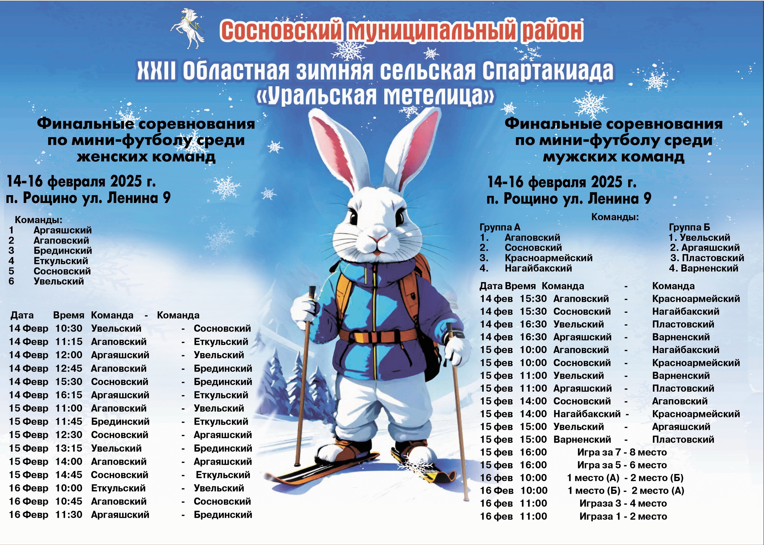 Вообще-то, соревнования в зачет сельской спартакиады «Уральская метелица» идут уже давно, а именно с 11 января. В городах Челябинской области уже завершились состязания по различным видам спорта, входящим в программу спартакиады. Теперь осталось выявить сильнейшие команды в семи дисциплинах.