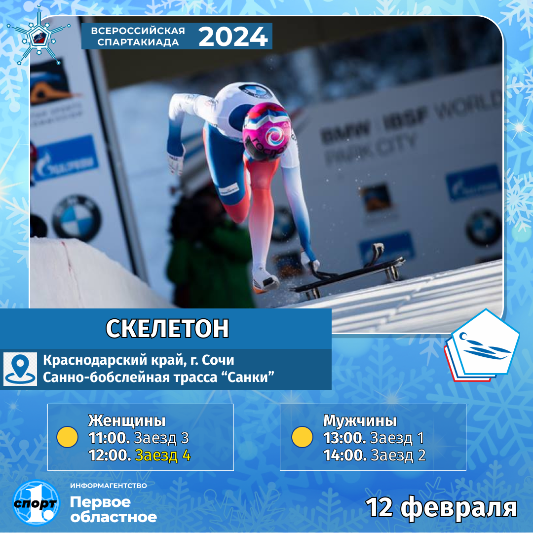 Четвертый день соревнований на Всероссийской зимней спартакиаде обещает быть очень насыщенным и интересным. Сегодня, 12 февраля, в программе соревнований впервые разыграют комплекты медалей во фристайле, санном спорте, скелетоне, бобслее и горнолыжном спорте. Стартует и женский хоккейный турнир. В лыжных гонках Александр Большунов постарается догнать по количеству завоеванных золотых наград спартакиады шорт-трекистку Екатерину Алдошкину.