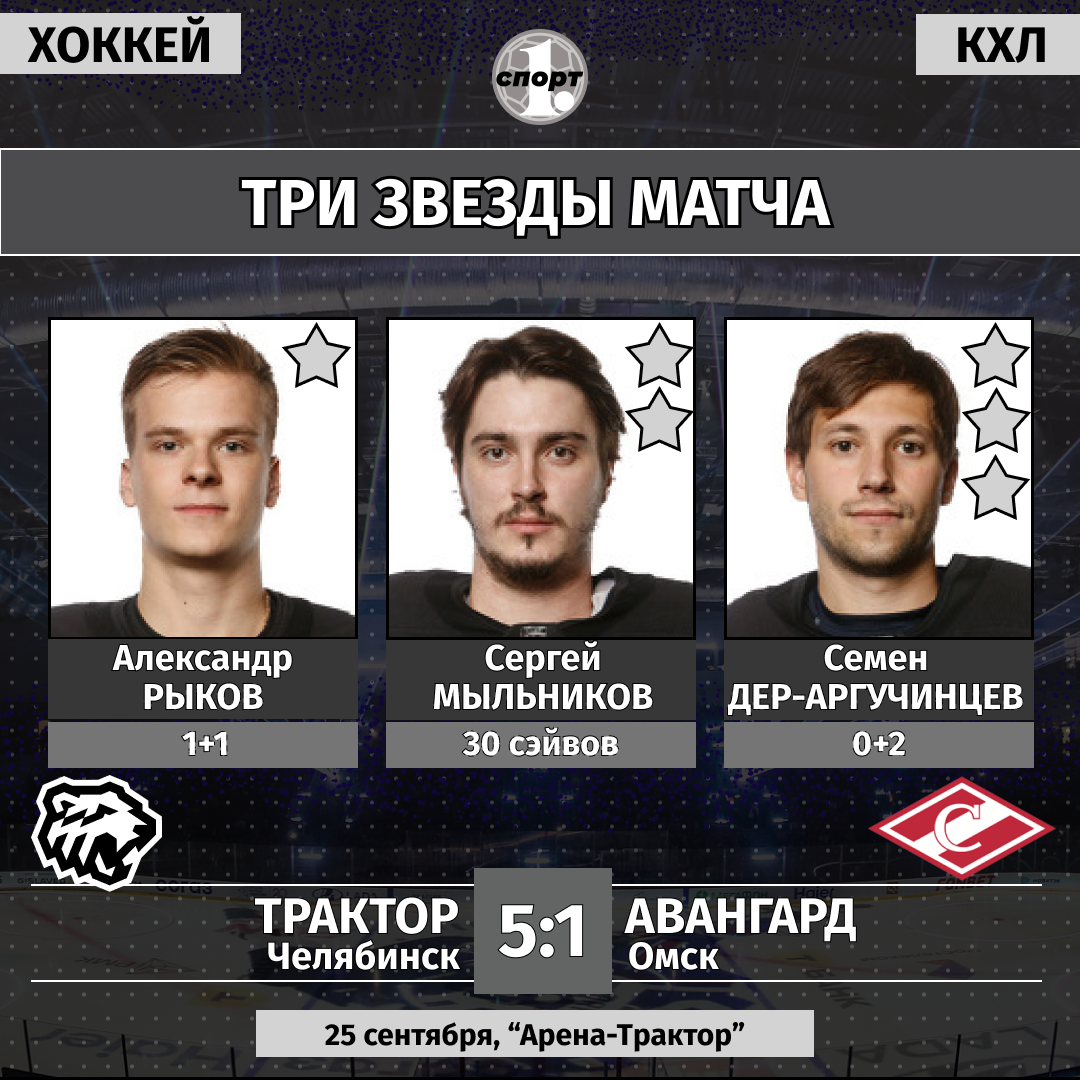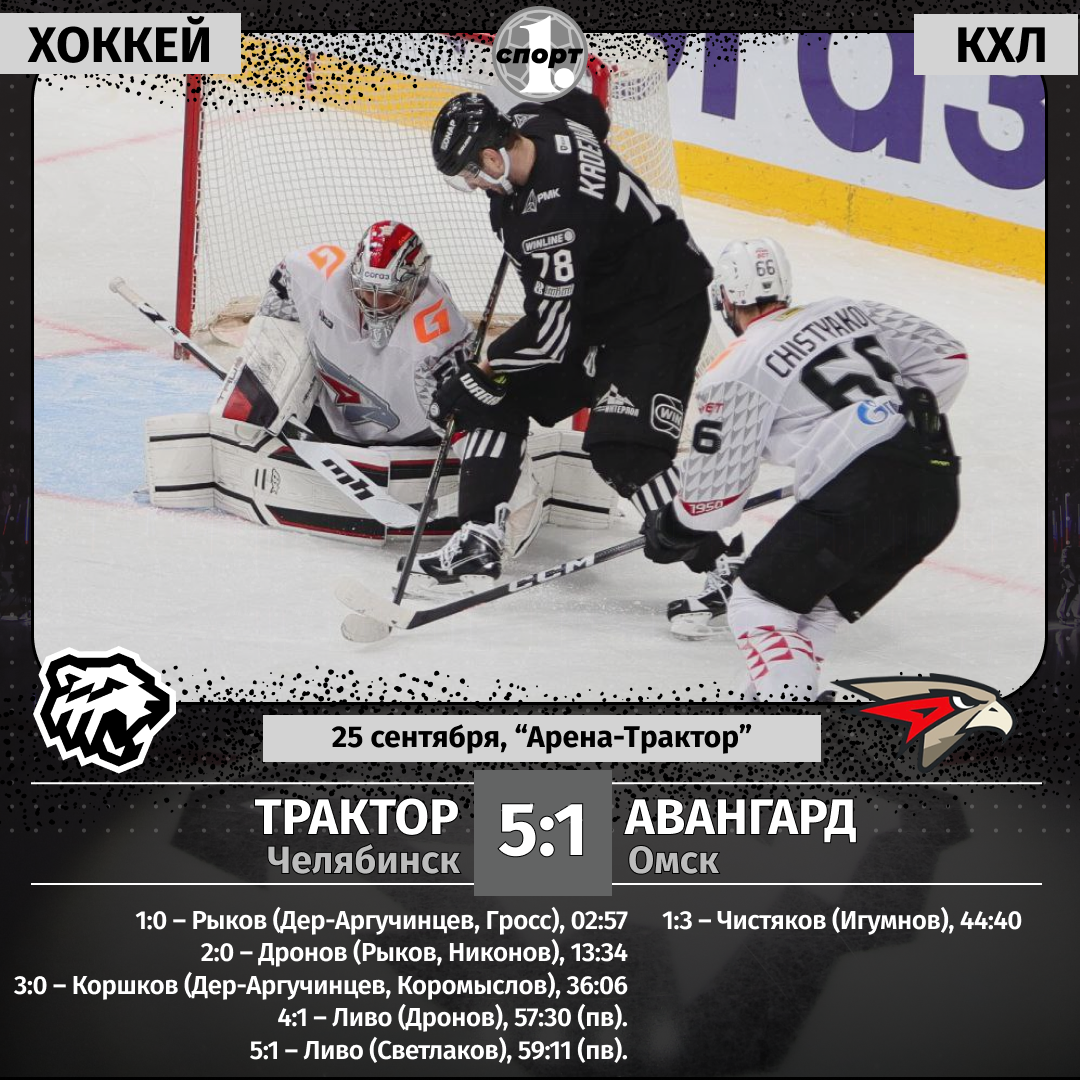 Хоккей. Чемпионат КХЛ. Сезон-2025/2026. 25 сентября. «Трактор» (Челябинск) — «Авангард» (Омск) — 5:1 (2:0, 1:0, 2:1).