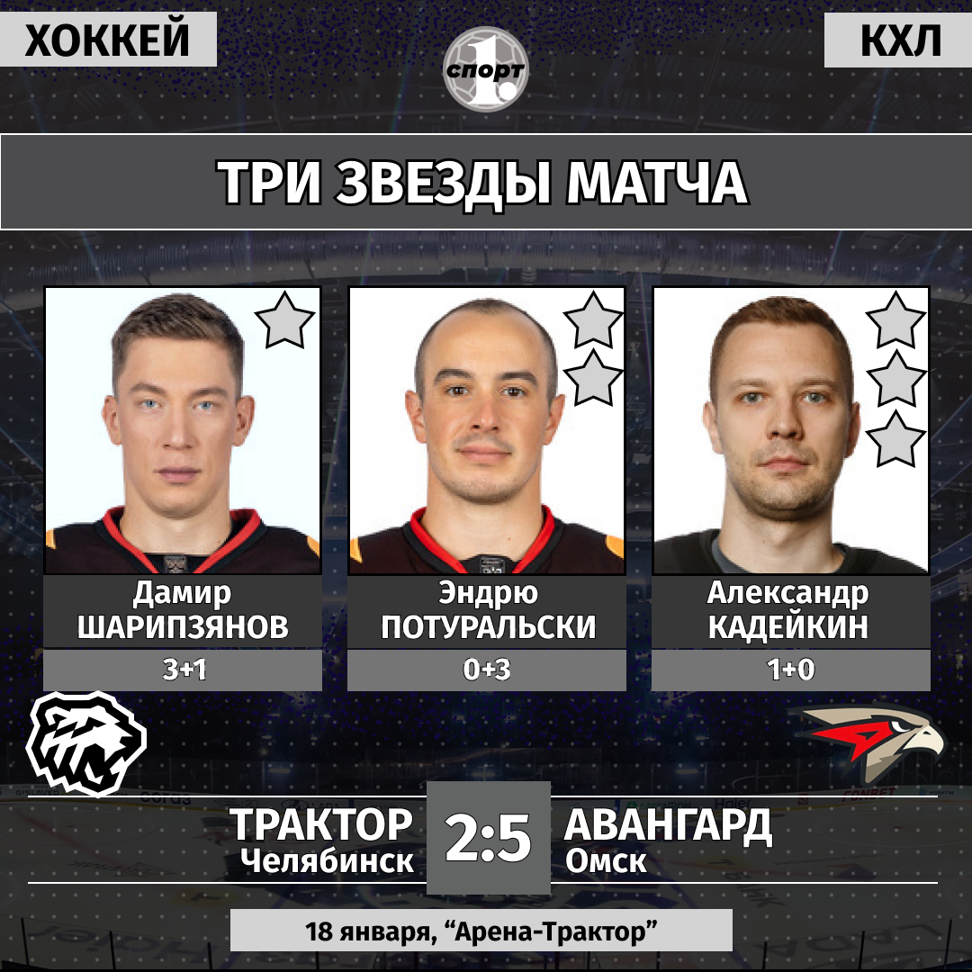 Хоккей. Сезон-2025/2026. Чемпионат КХЛ. 18 января. «Трактор» (Челябинск) — «Авангард» (Омск) — 2:5 (1:1, 0:3, 1:1).