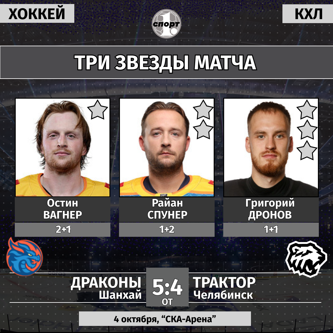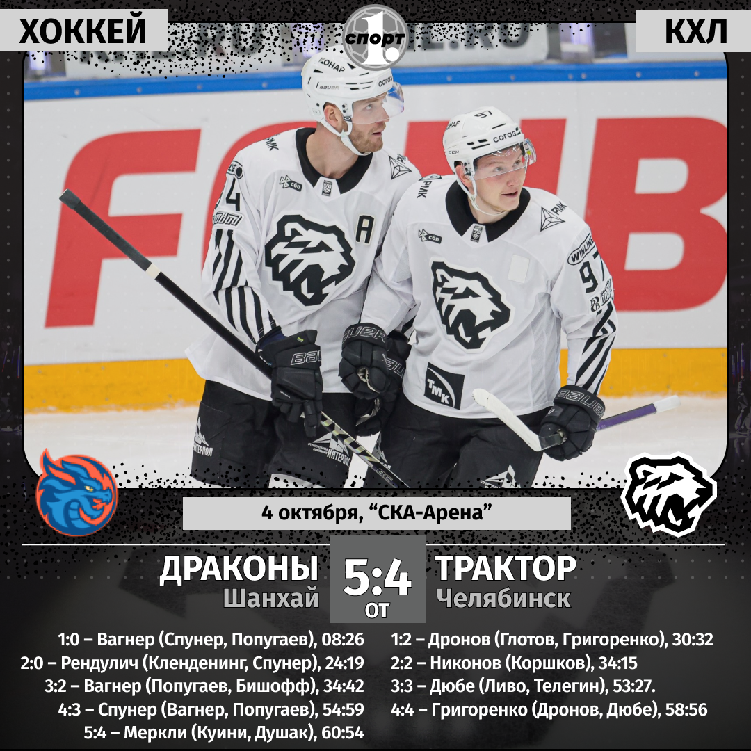Хоккей. Чемпионат КХЛ. Сезон-2025/2026. 4 октября. «Шанхайские драконы» (Шанхай) — «Трактор» (Челябинск) — 5:4 от (1:0, 2:2, 1:2, 1:0).