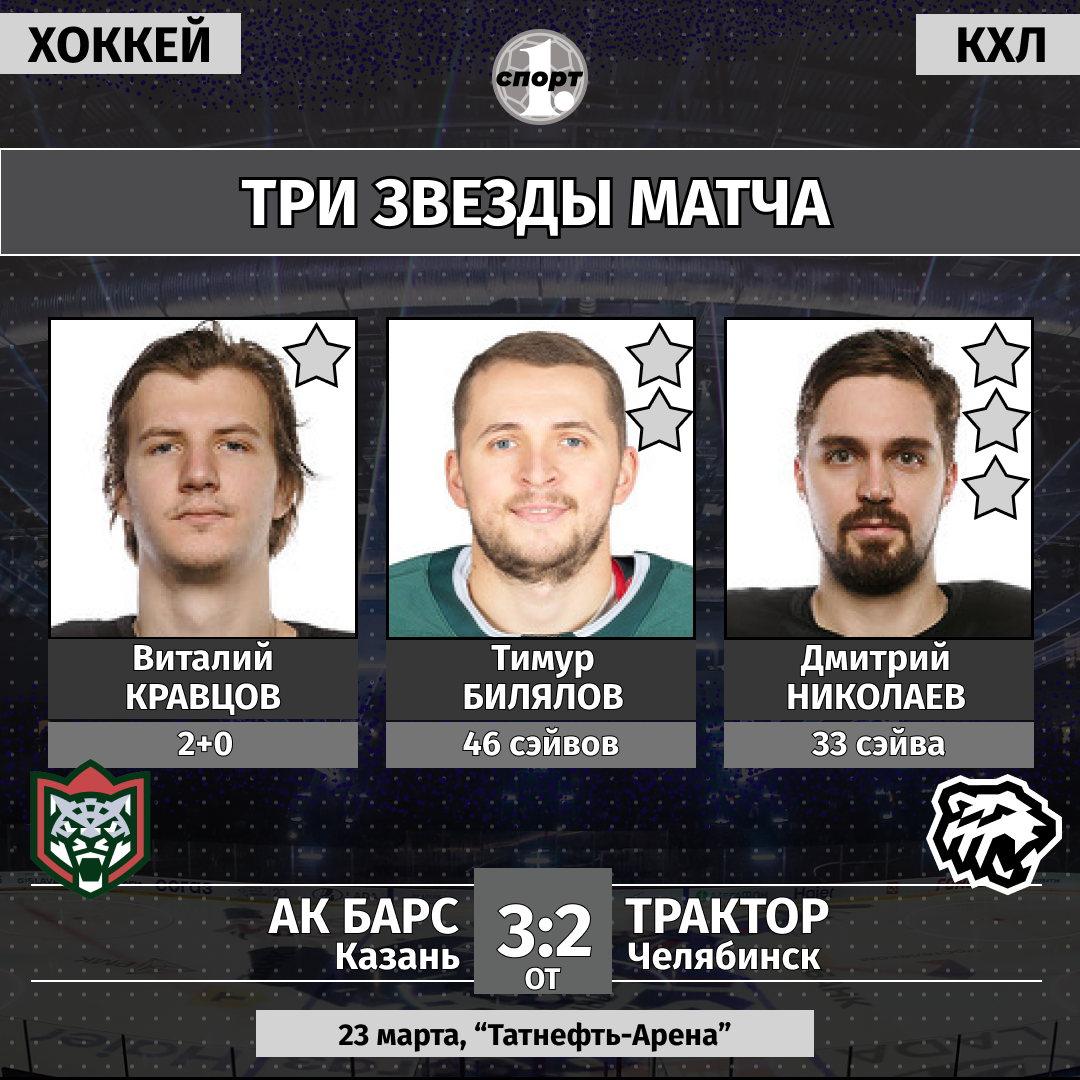 23 марта. «Ак Барс» (Казань) — «Трактор» (Челябинск) — 3:2 от (0:1, 0:0, 1:2, 1:0).