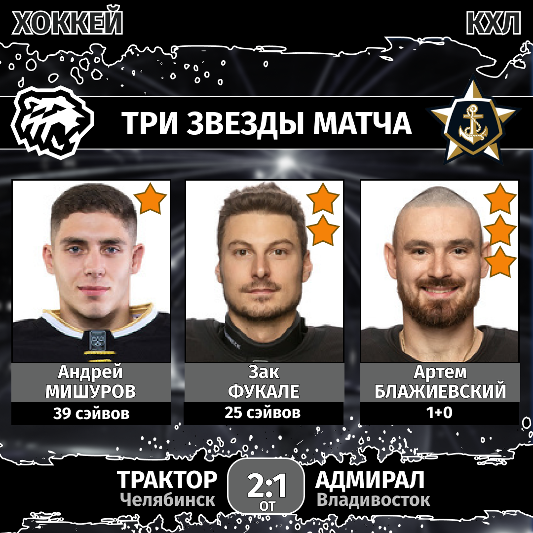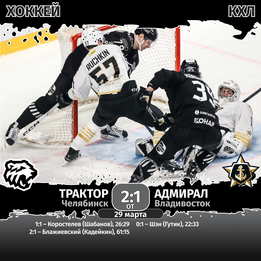 29 марта. «Трактор» (Челябинск) — «Адмирал» (Владивосток) — 2:1 от (0:0, 1:1, 0:0, 1:0).