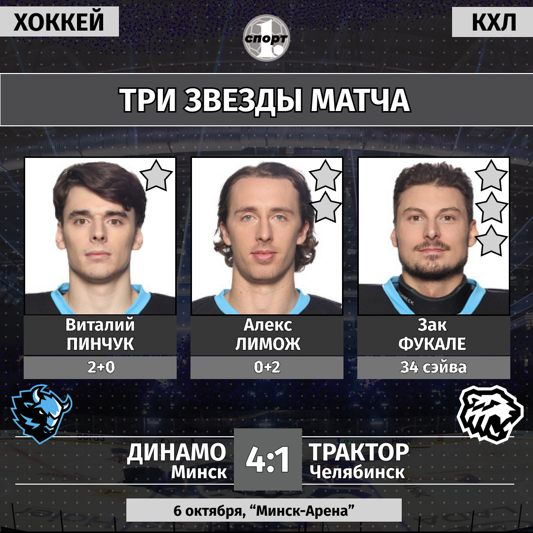 Хоккей. Сезон-2025/2026. Чемпионат КХЛ. 6 октября. «Динамо» (Минск) — «Трактор» (Челябинск) — 4:1 (1:1, 3:0, 0:0).