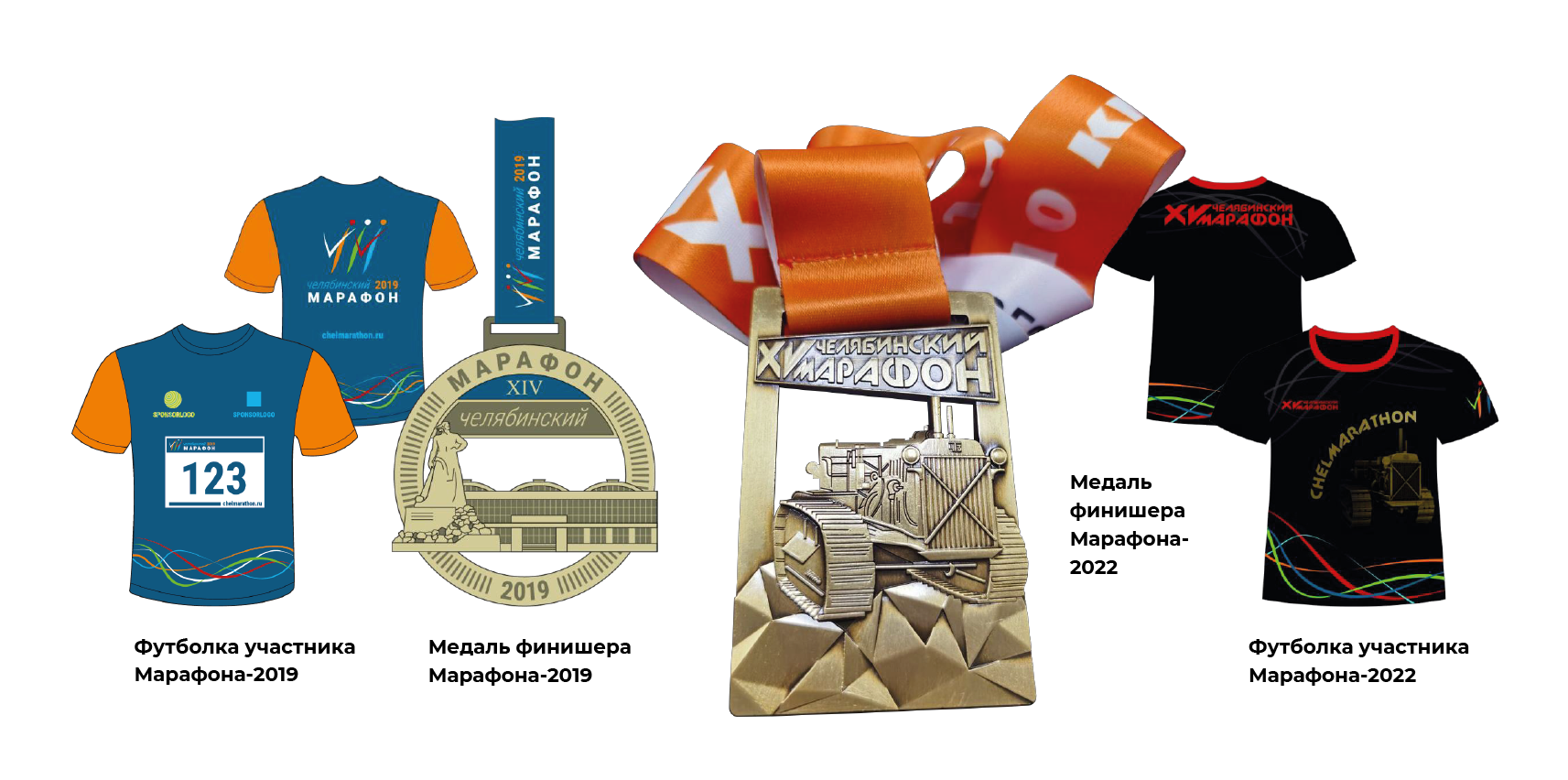 Каждый участник забегов получит стартовый пакет с фирменной продукцией Челябинского марафона, а на финише памятную медаль. Вот так выглядит сувенирная продукция прошлых лет. В этом году она, по словам организаторов, будет как минимум не хуже.