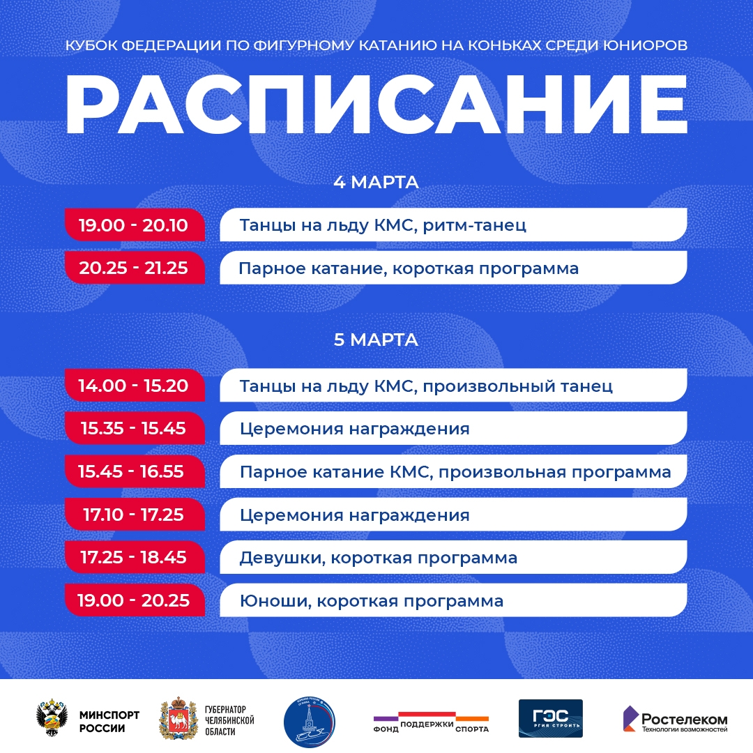 Сегодня, 4 марта, на льду арены «Трактор» в Челябинске стартует Кубок Федерации по фигурному катанию среди юниоров. Будущие звезды сборной России разыграют четыре комплекта наград. Публикуем программу соревнований и рассказываем, к кому зрителям стоит внимательнее присмотреться.
