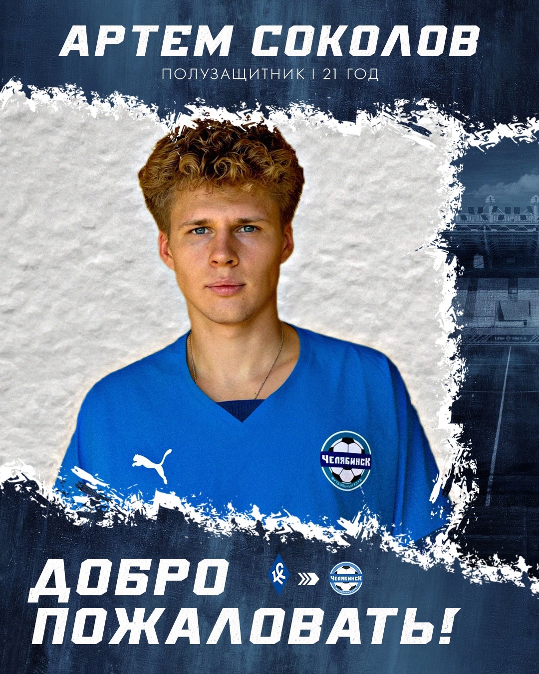 Состав футбольного клуба «Челябинск» пополнил 21‑летний атакующий полузащитник Артем Соколов. Воспитанник столичной академии «Чертаново» проявил себя на молодежном уровне, став лучшим игроком Юношеской футбольной лиги. В его карьере также 50 матчей в российской Премьер-лиге за самарские «Крылья Советов», подмосковные «Химки» и «Пари-НН». Информацию о заключении контракта с игроком подтвердили в пресс-службе ФК «Челябинск».