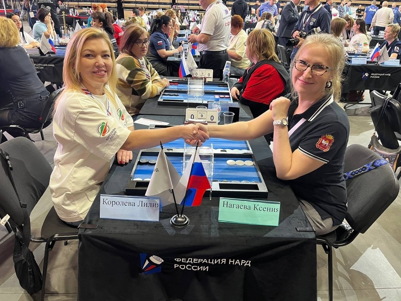 В шаге от призовых мест остановились наши спортсмены в парном турнире по коротким нардам: у мужчин 6-е место (60 участников) заняли Сергей Лютов / Константин Пустохин, у женщин 4-е место (18 участников) заняли Ксения Нагаева / Елена Ахтямова. Также 7-е место в главном турнире по длинным нардам среди женщин (46 участниц) заняла Лидия Тюнина (Челябинск).