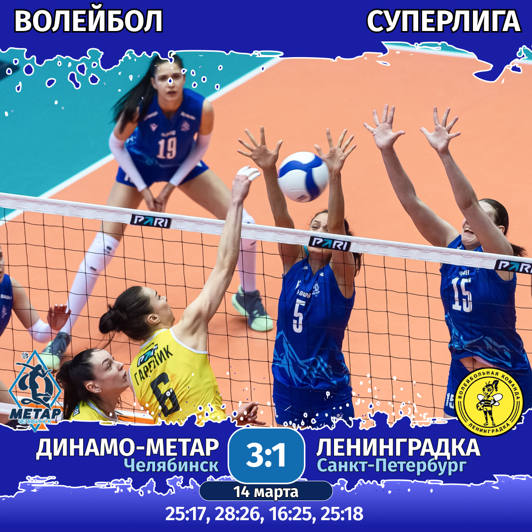 14 марта. «Динамо-Метар» (Челябинск) — «Ленинградка» (Санкт-Петербург) — 3:1 (25:17, 28:26, 16:25, 25:18).