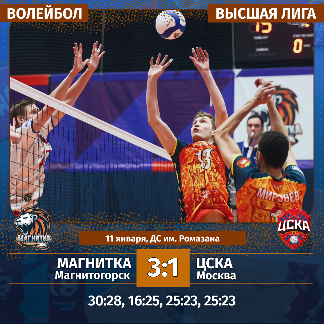 В это же самое время «Магнитка» на своей площадке выясняла отношения с армейцами из Москвы. В родных стенах южноуральцы показали хорошую игру. В драматичном первом матче они вырвали победу «с мясом» на тай-брейке, победив в решающем сете со счетом 15:13.