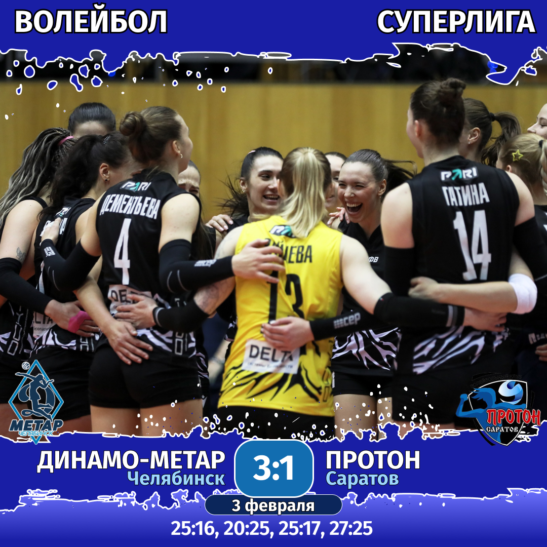 Женская волейбольная команда «Динамо-Метар» из Челябинска одержала непростую победу над своим принципиальным соперником в Суперлиге. Вчера, 3 февраля, подопечные Алексея Дешина в четырех сетах выиграли у саратовского «Протона». Залогом победы стала успешная игра челябинской команды в нападении, сообщает корреспондент ИА «Первое областное».