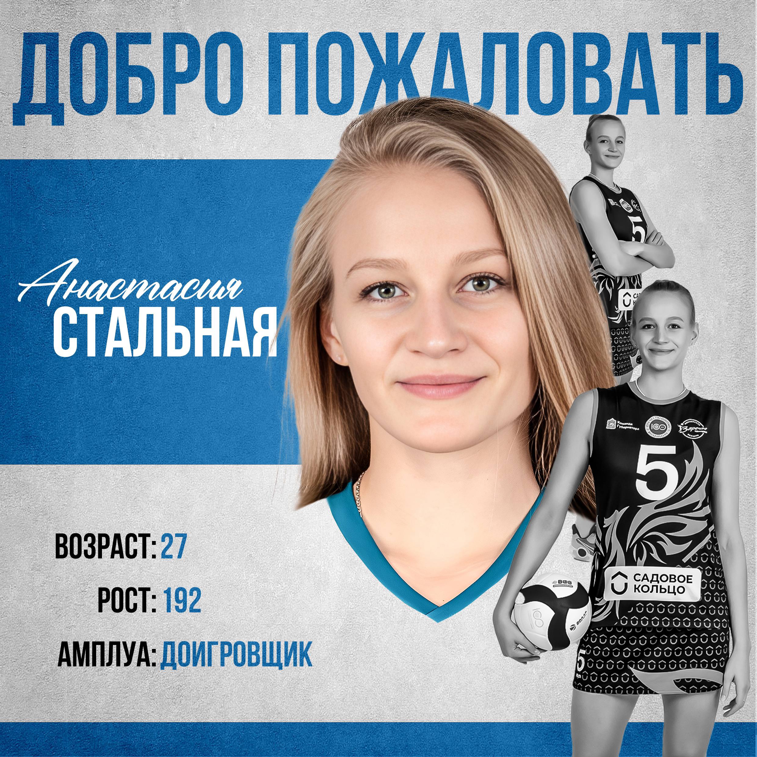 Анастасия Стальная подписала контракт с «Динамо-Метаром» на один сезон. Она выступает на позиции доигровщика, является мастером спорта. Ранее выступала также за такие команды, как «Факел» (Новый Уренгой), «Луч» (Москва) и «Северянка» (Череповец).
